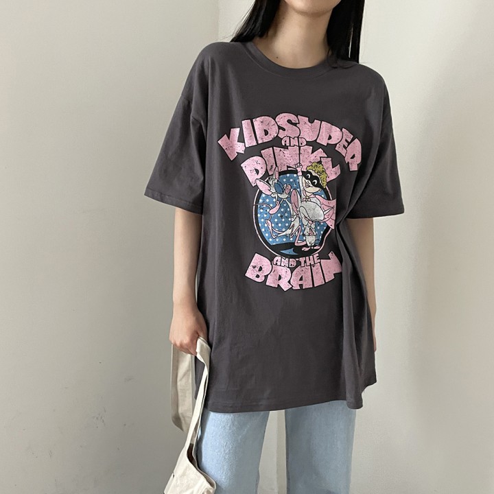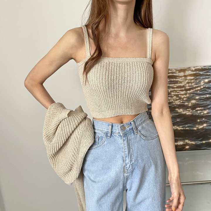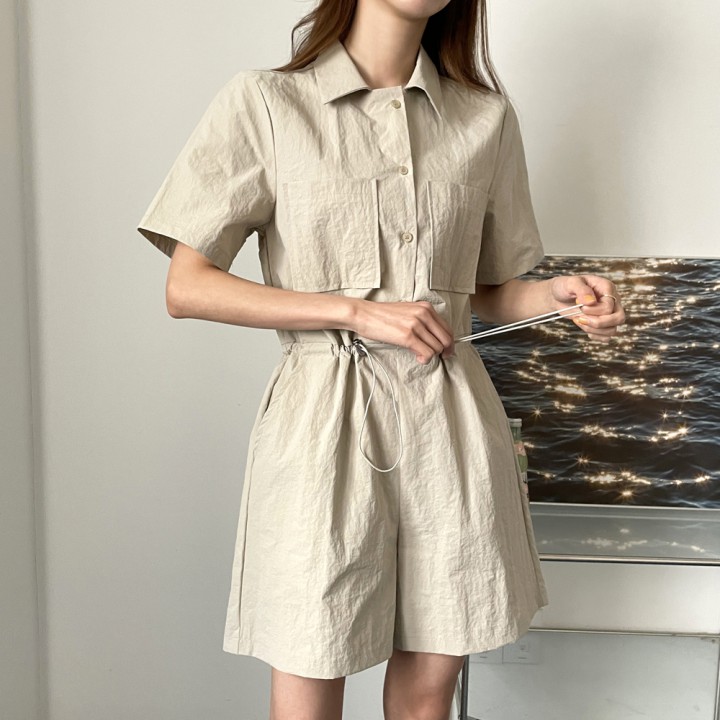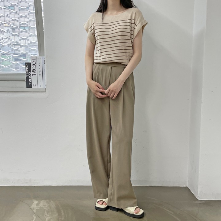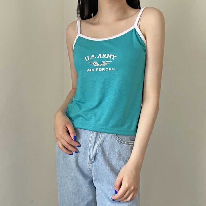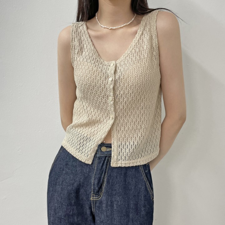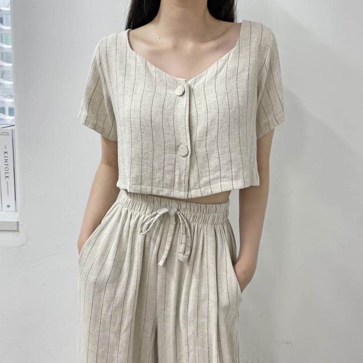 스퀘어넥 사선단추 슬림 반팔티셔츠