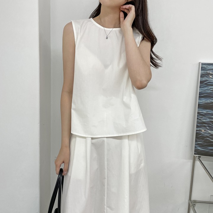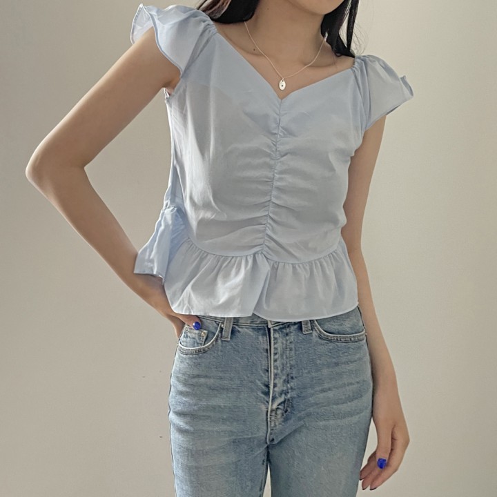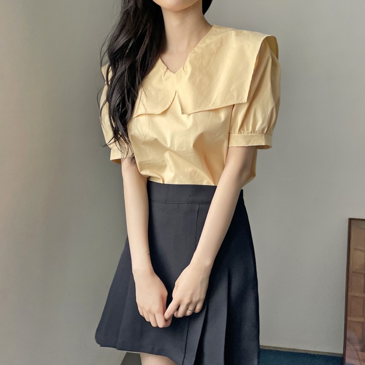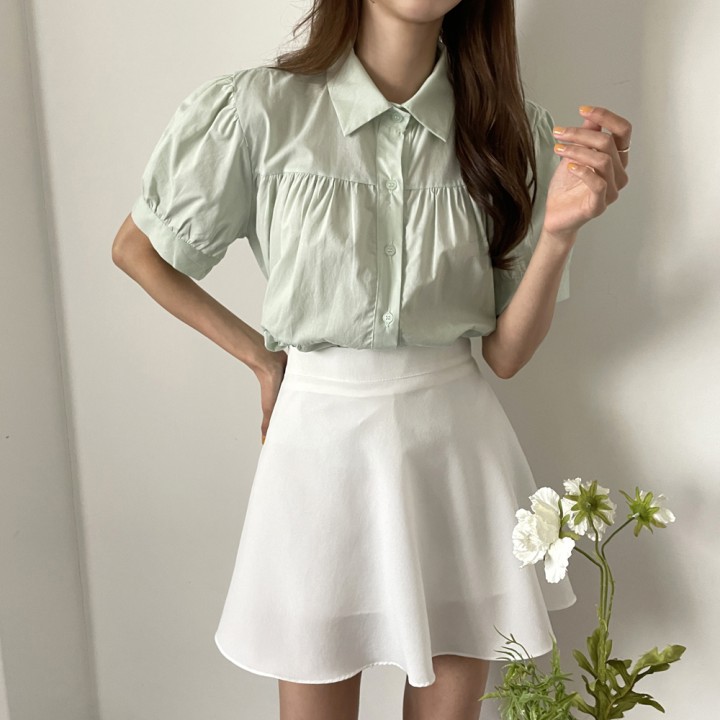 플리츠 주름 언발 코튼 블라우스 셔츠