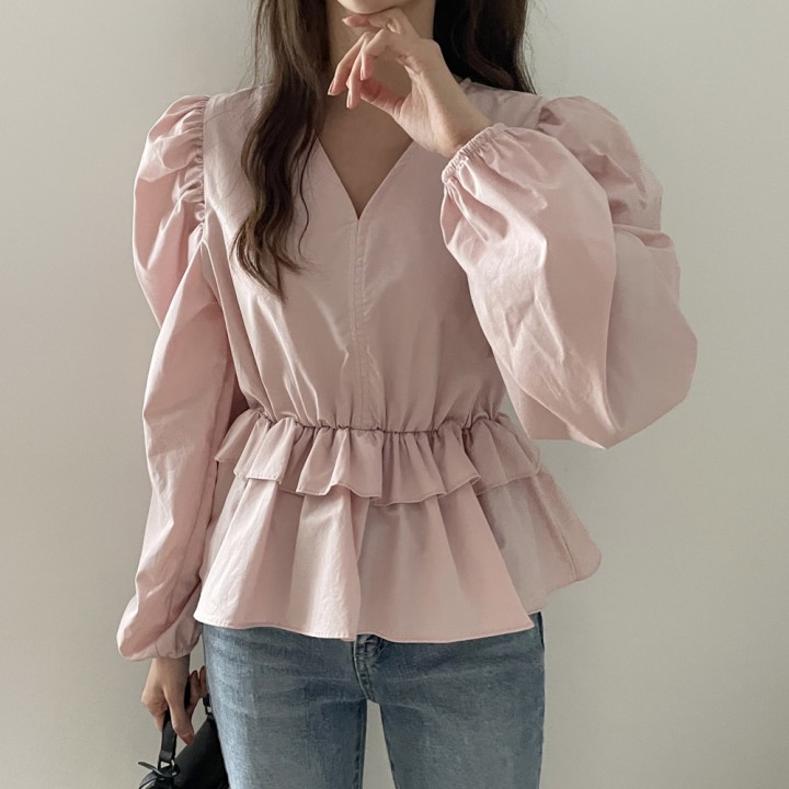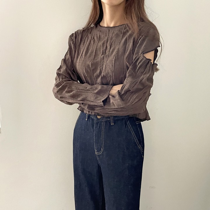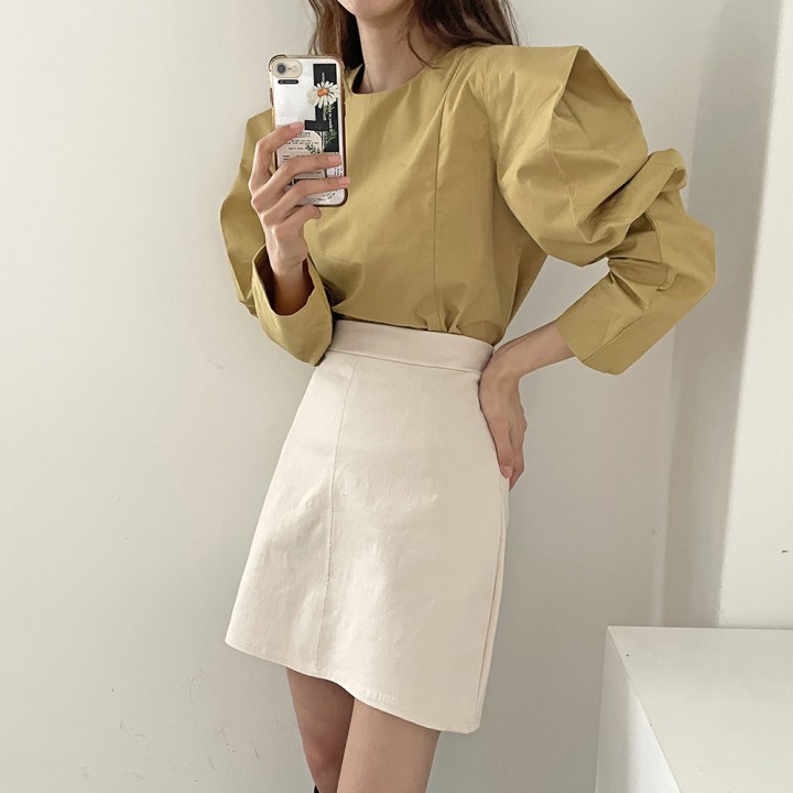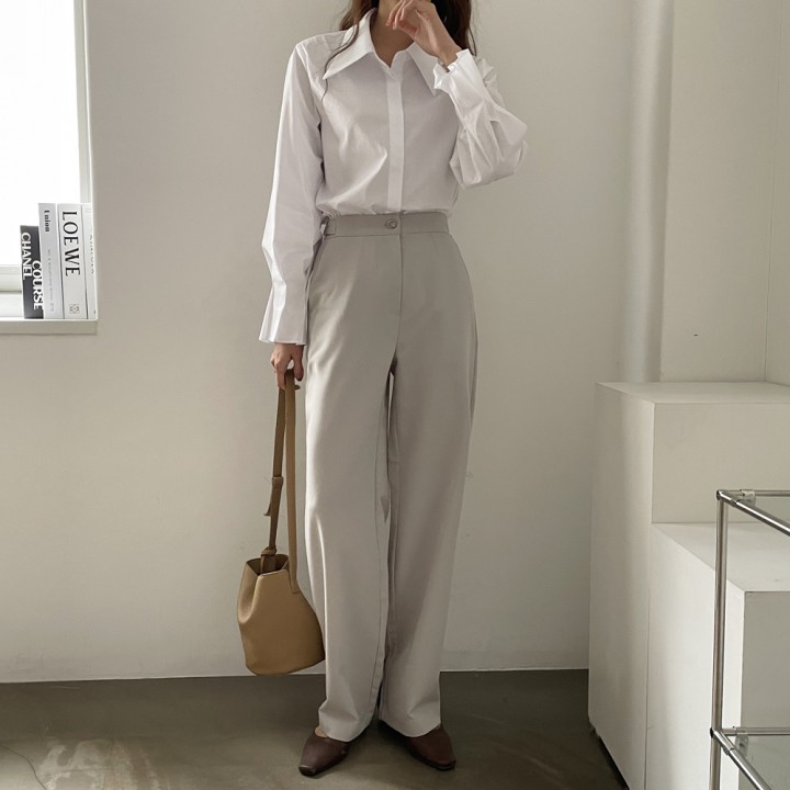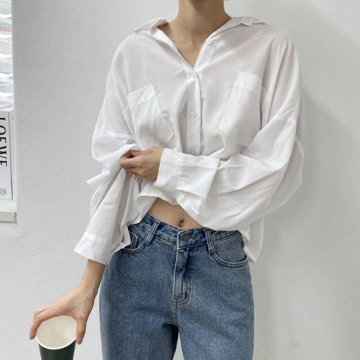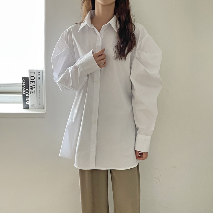 플리츠 주름 언발 코튼 블라우스 셔츠