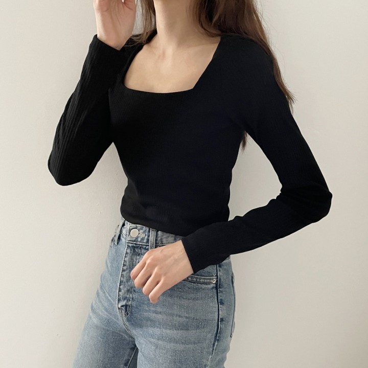 간절기까지 쭉 스퀘어넥 백 리본 블라우스