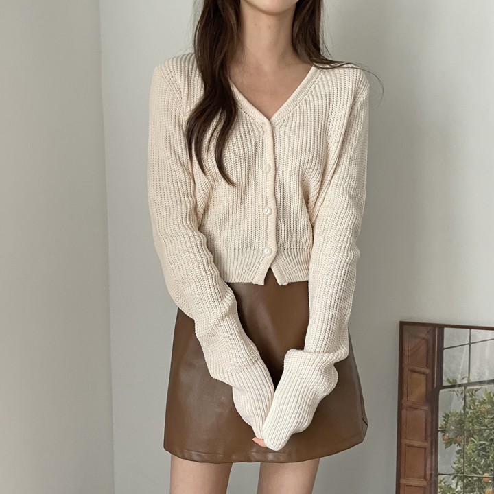 미니쉘 브이넥 니트 가디건