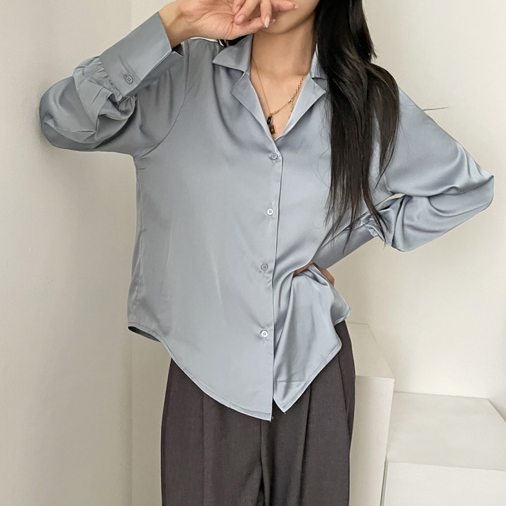 샤틴 오픈 카라 블라우스