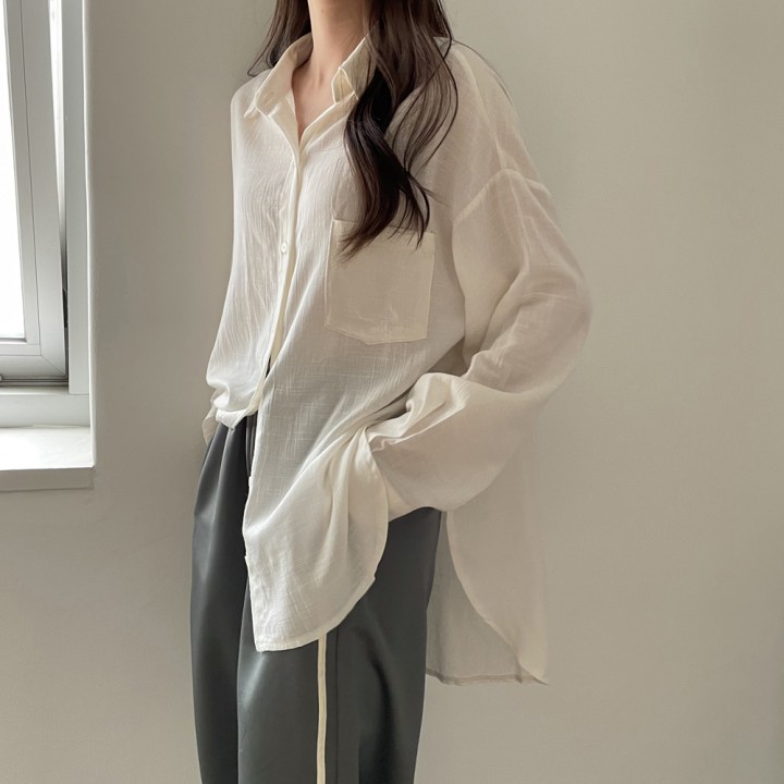 뒷트임 포인트 시스루 블라우스