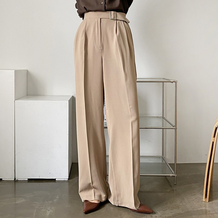 버클 핀턱 와이드 팬츠