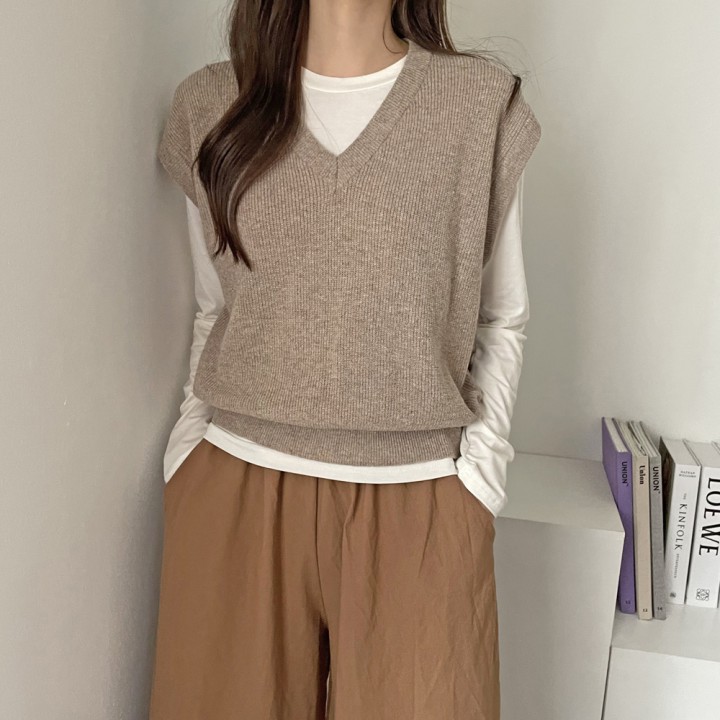 브이넥 하찌 니트 조끼