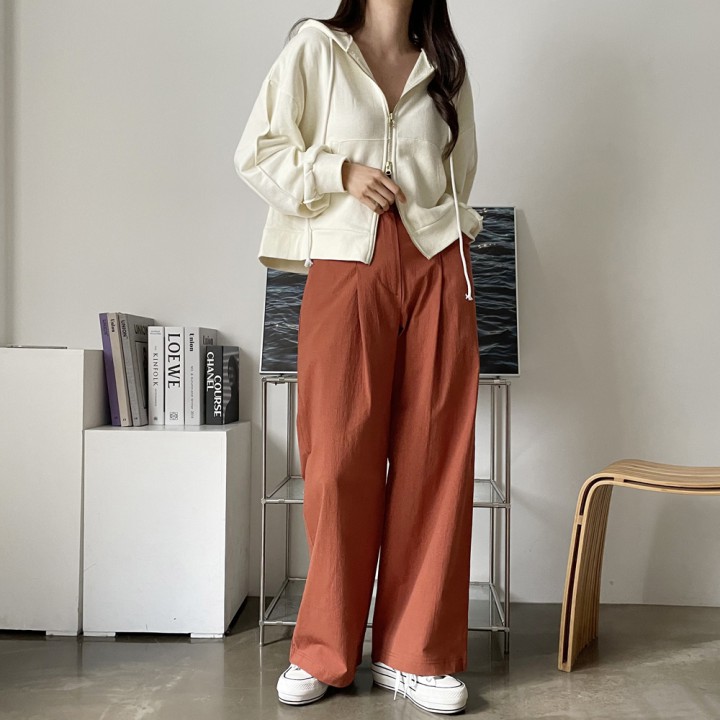 볼륨 핀턱 와이드 코튼 팬츠
