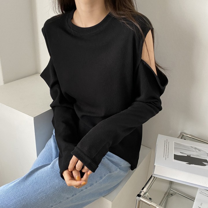 [꾸안꾸] 어깨 트임 라운드 티셔츠