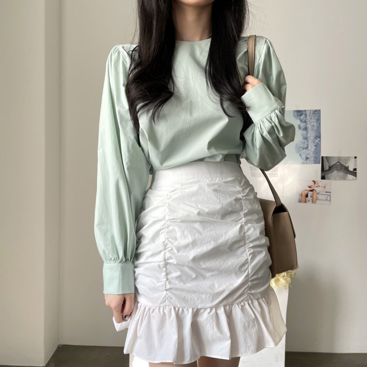 스모크밴딩 벌룬 블라우스