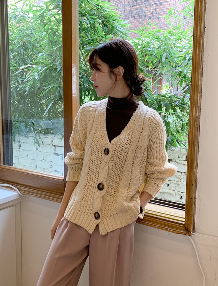 포근한 꽈배기 니트 가디건
