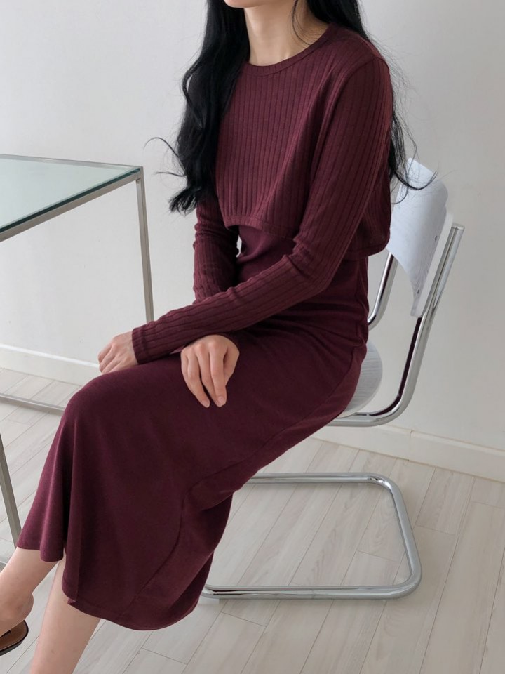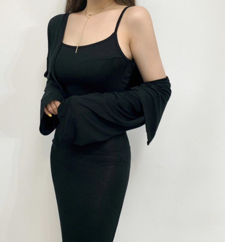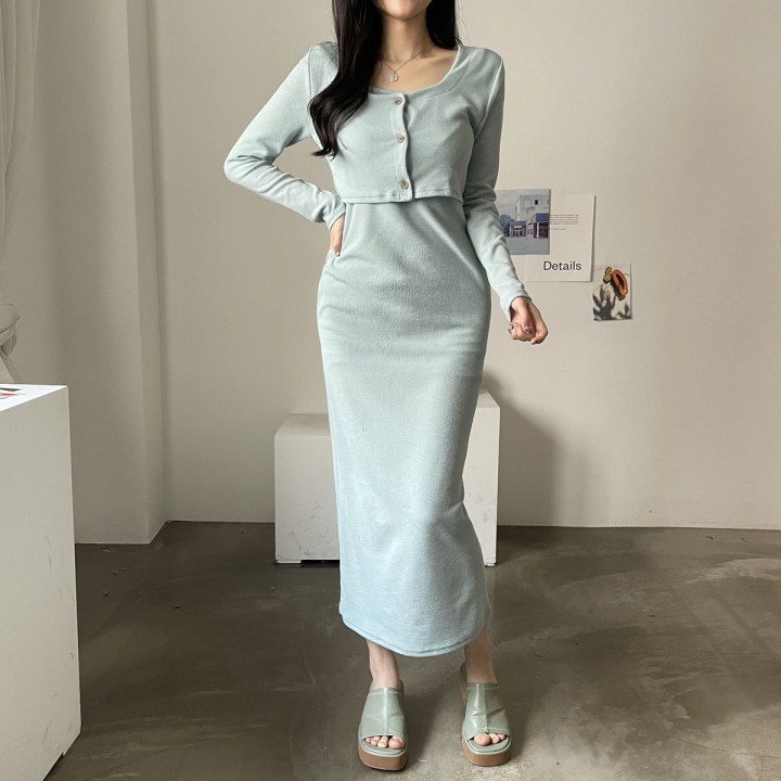 꾸안꾸 민소매 롱원피스 가디건 세트 4color