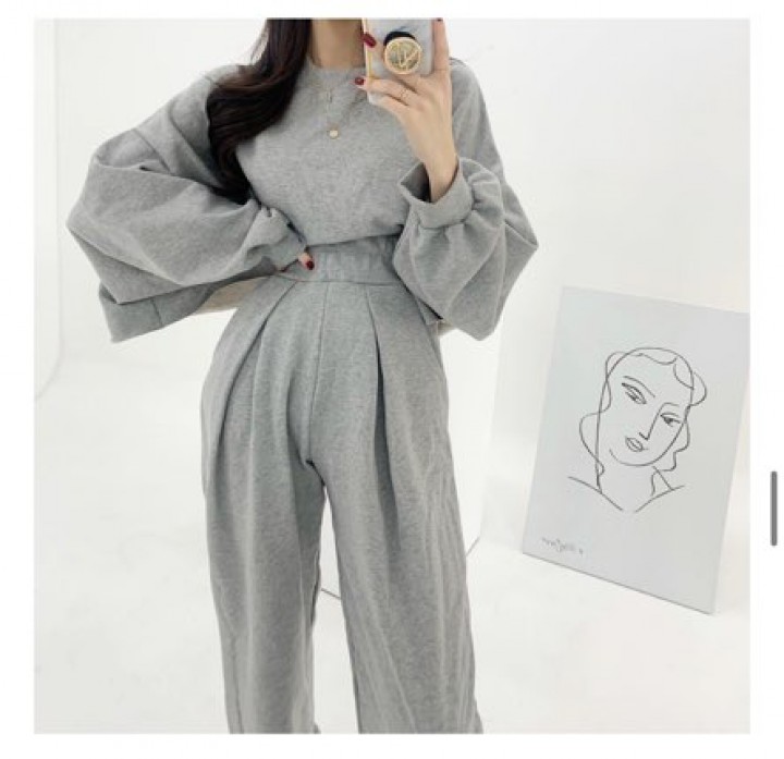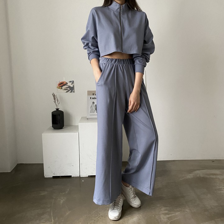 [데일리룩] 하이넥 크롭 집업 + 와이드 팬츠 트레이닝 세트