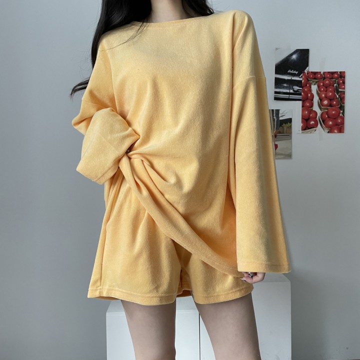 [홈웨어] 뽀송 타올 맨투맨 반바지 트레이닝 세트