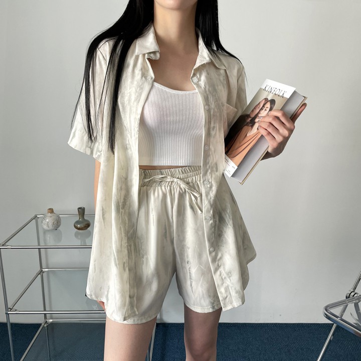 [색감예쁨/3color] 뒷트임 슬릿 루즈핏 물나염 세트