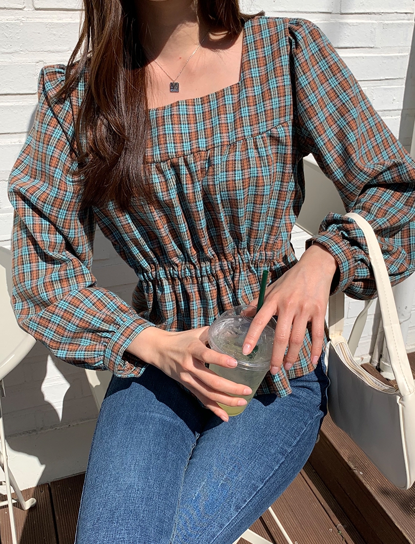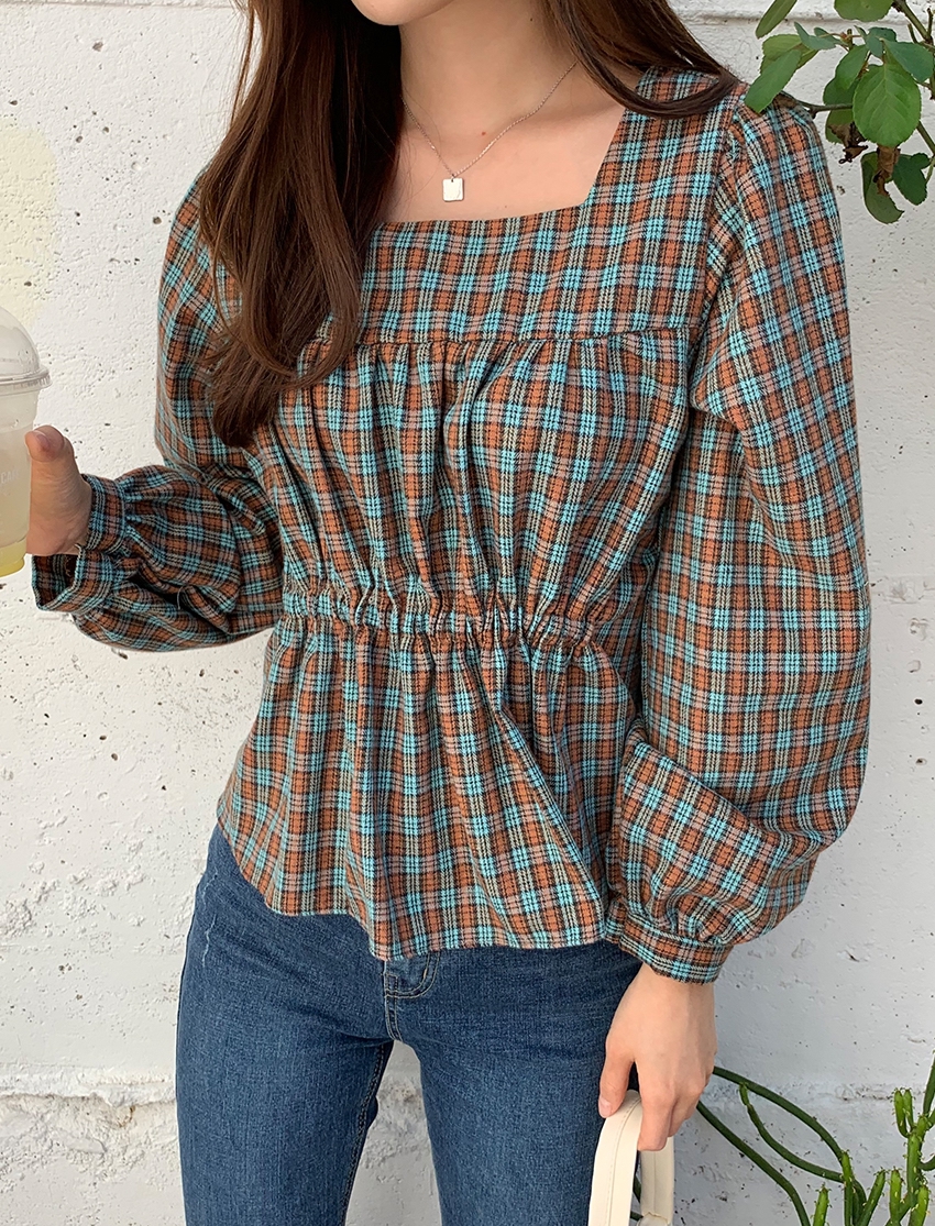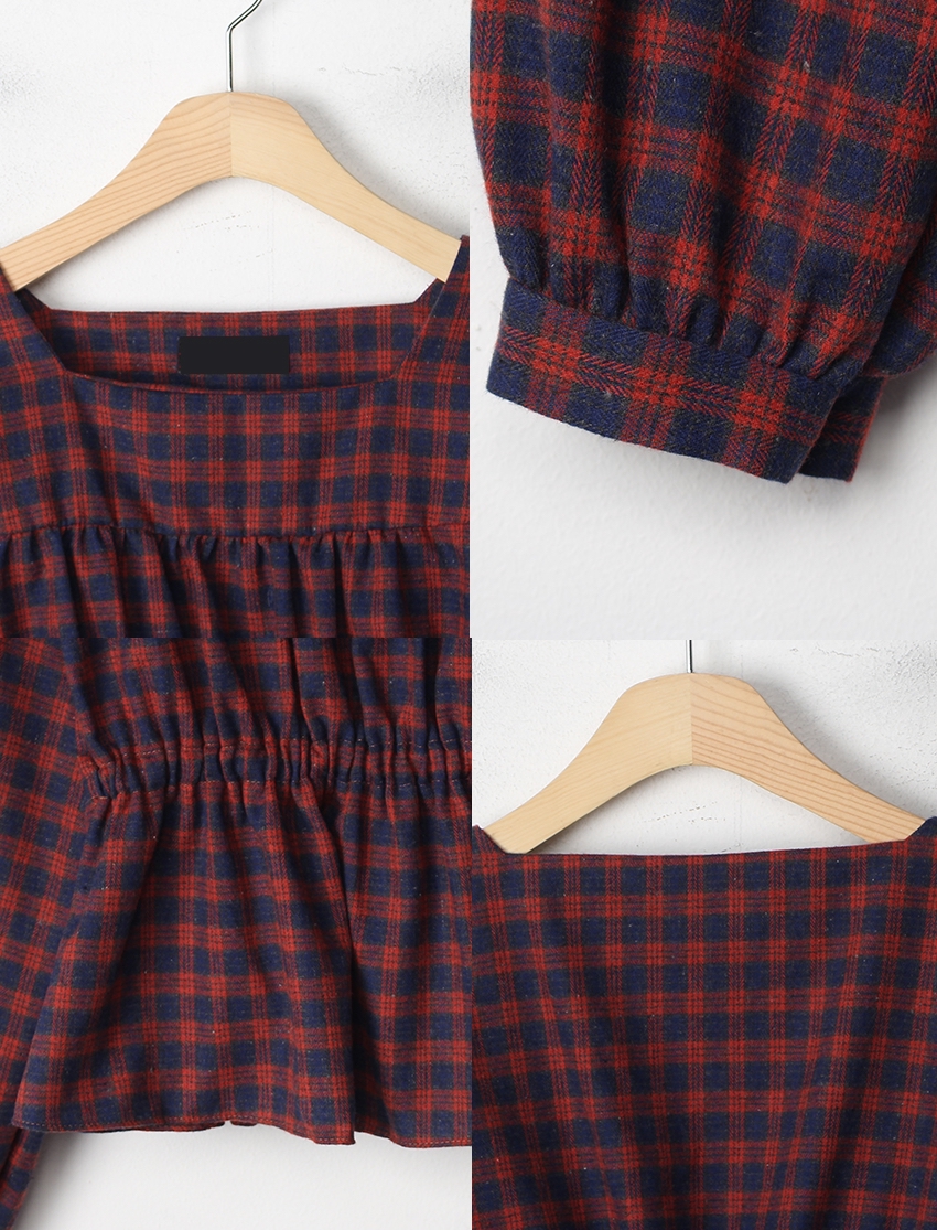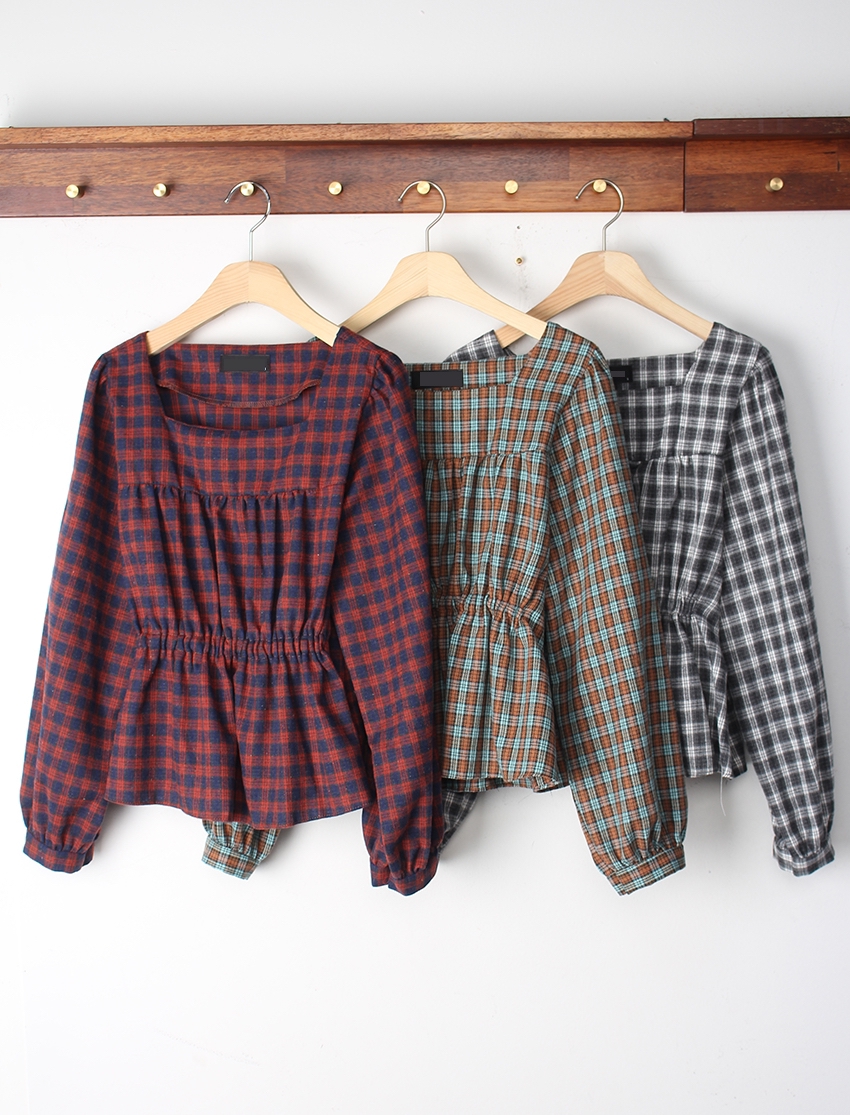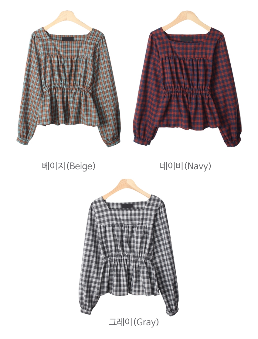기모소재의 예쁜 체크 원단으로 가슴 부분과 뒷 디자인에 셔링감으로 포인트를 준 디자인이며, 44~66사이즈분들 편하게 착용 가능하실 사이즈감입니다:)