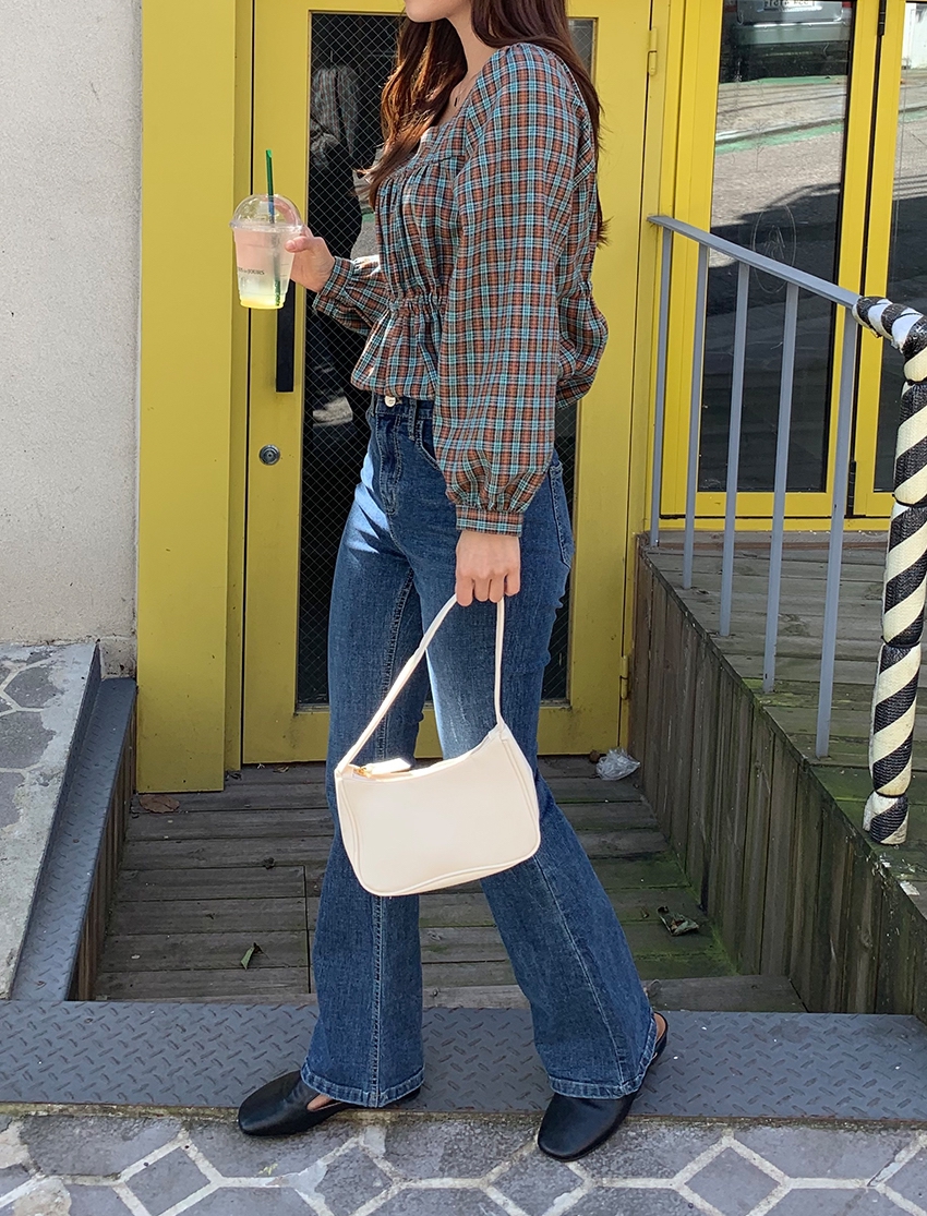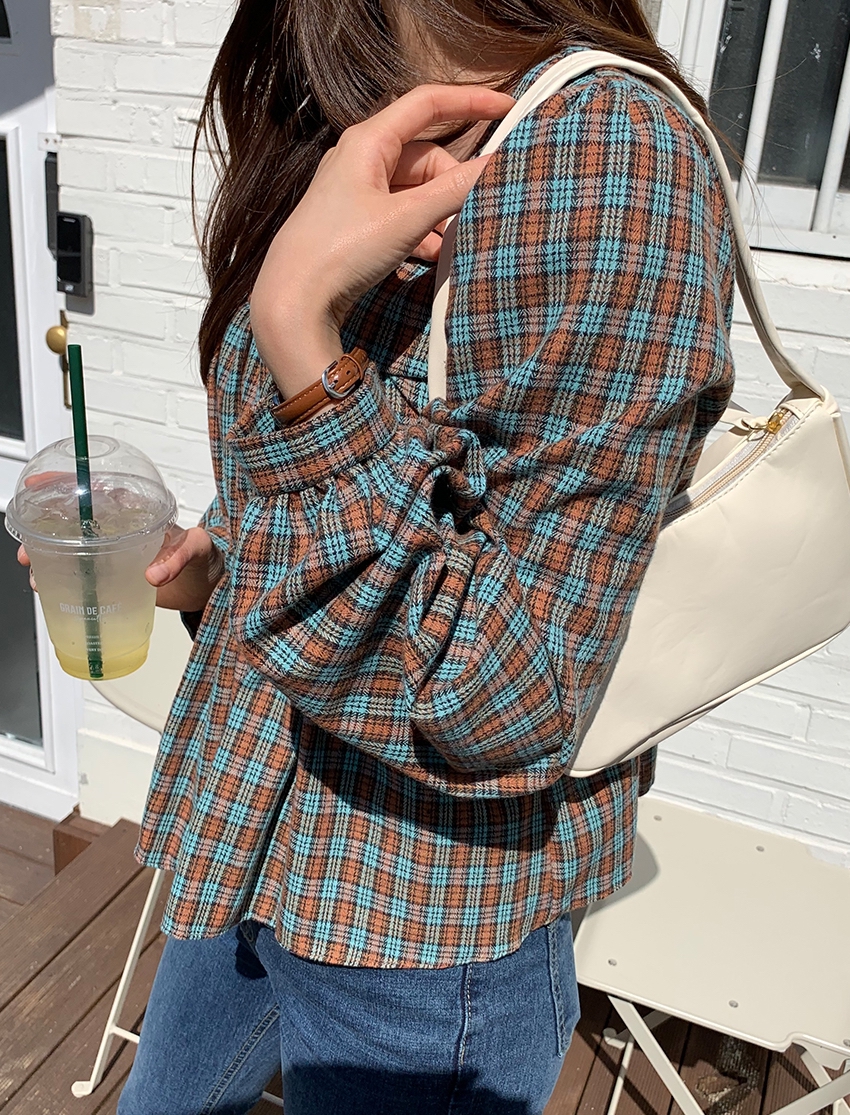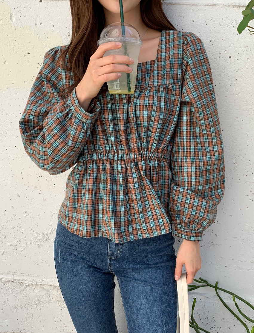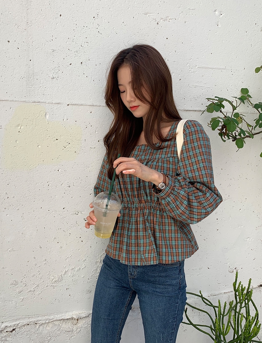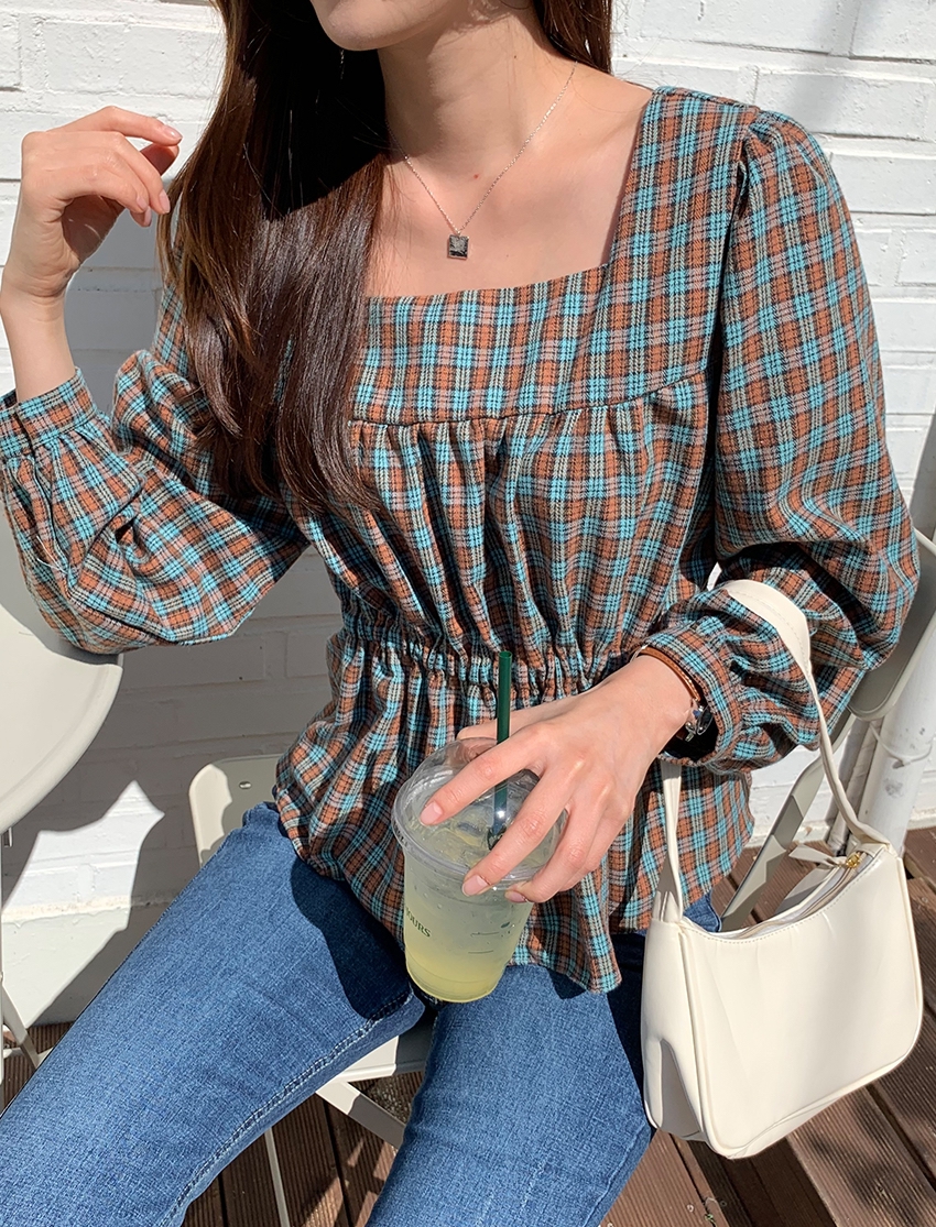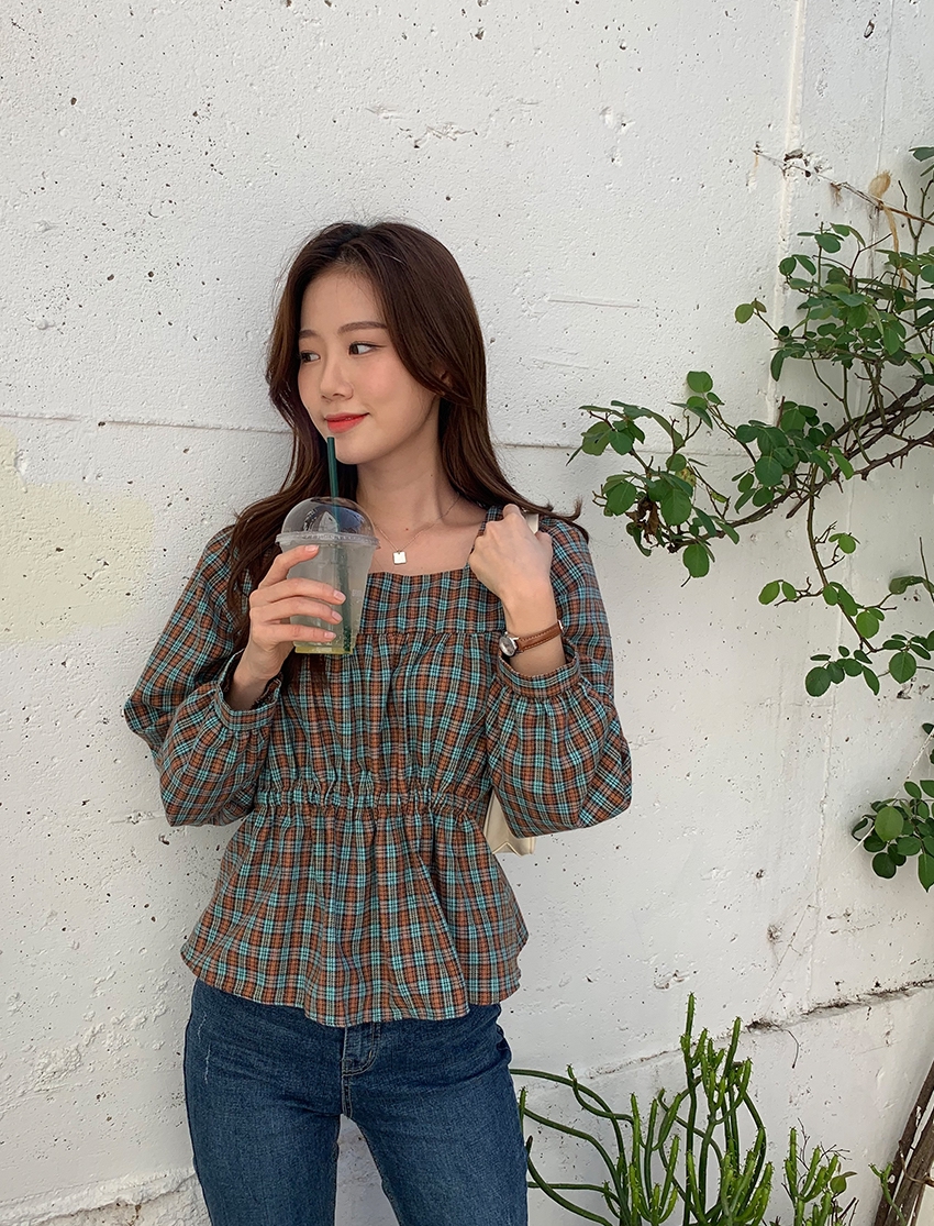 기모소재의 예쁜 체크 원단으로 가슴 부분과 뒷 디자인에 셔링감으로 포인트를 준 디자인이며, 44~66사이즈분들 편하게 착용 가능하실 사이즈감입니다:)