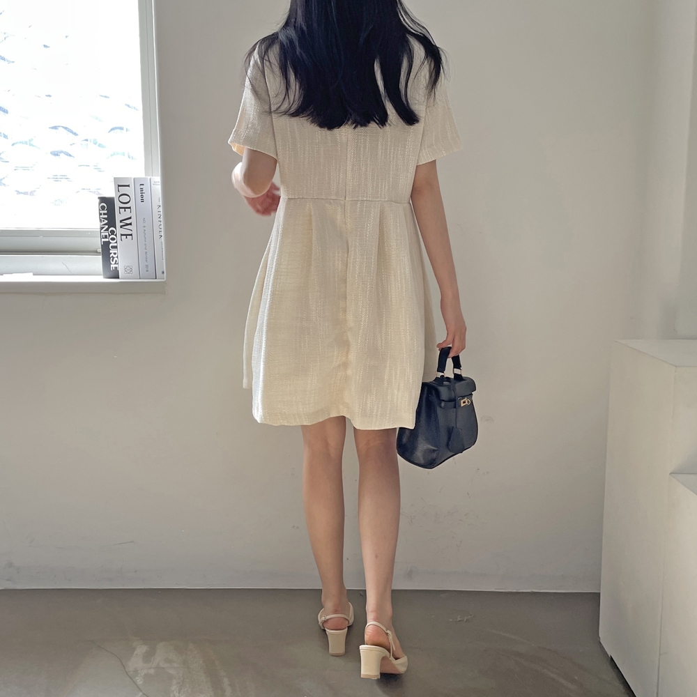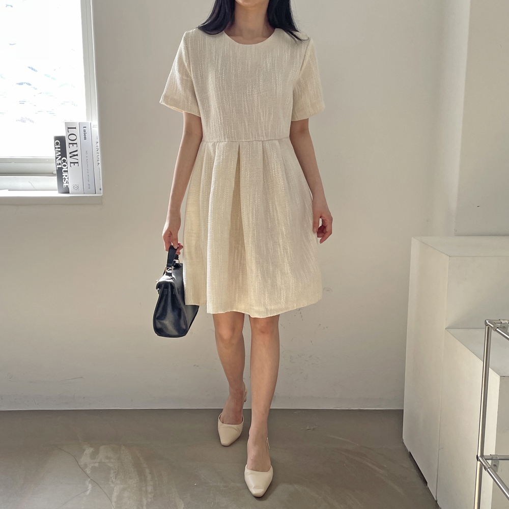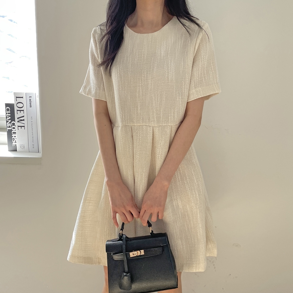 - 심플 반팔 트위드 미니 원피스