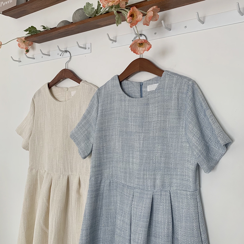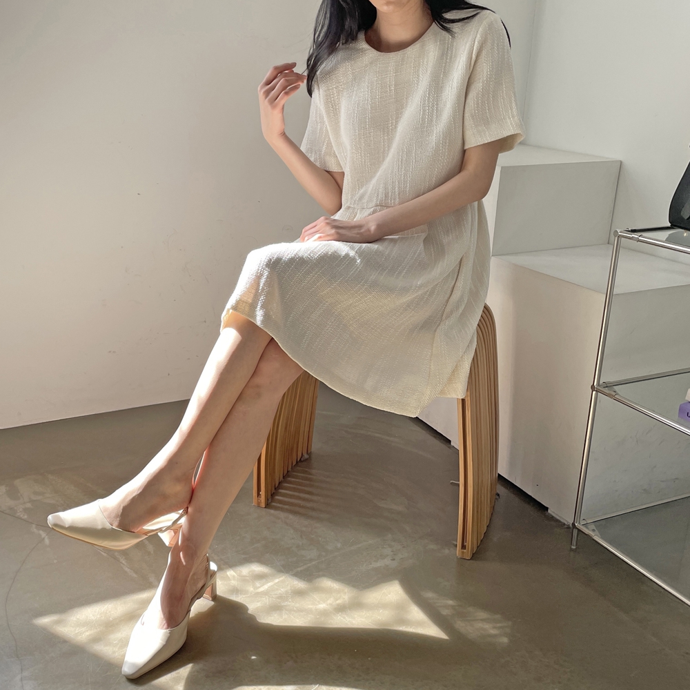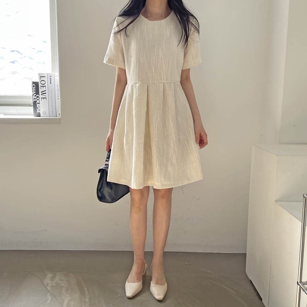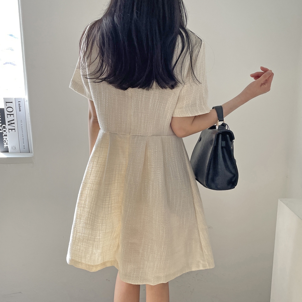 - 심플 반팔 트위드 미니 원피스