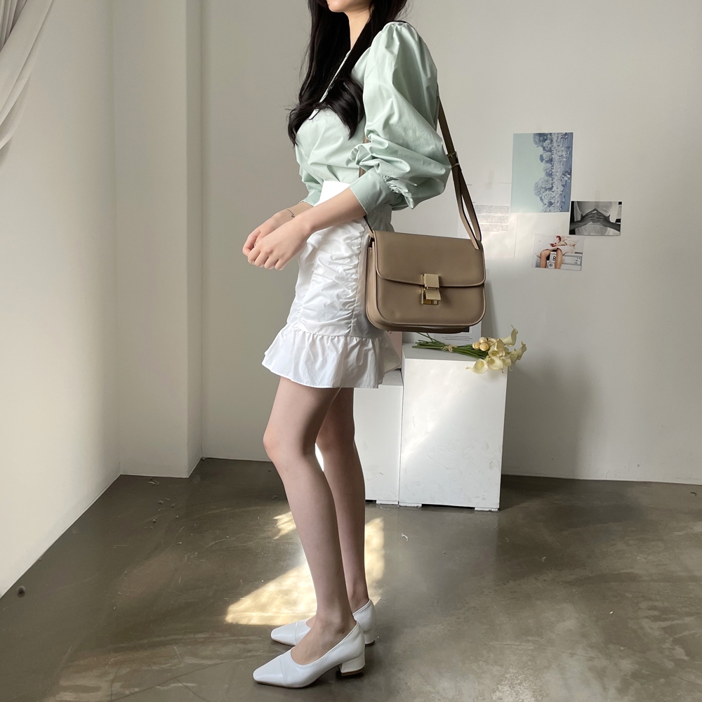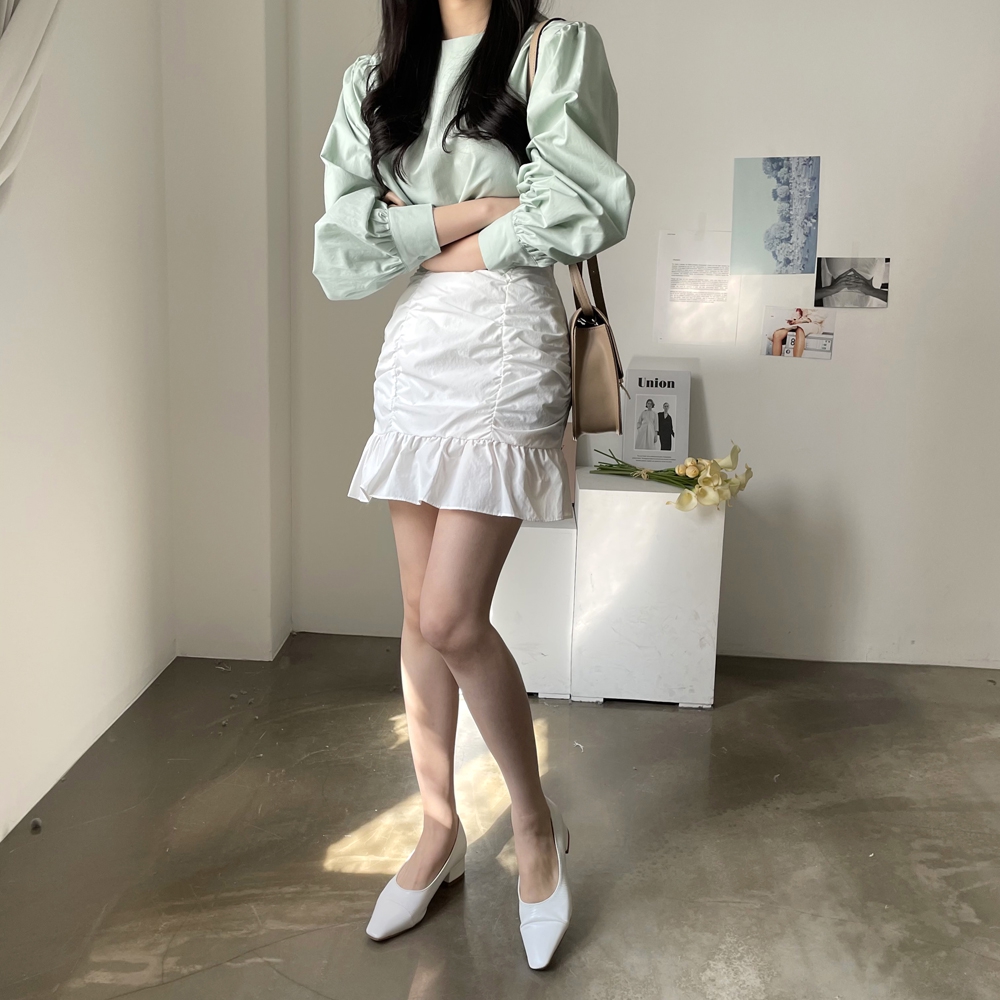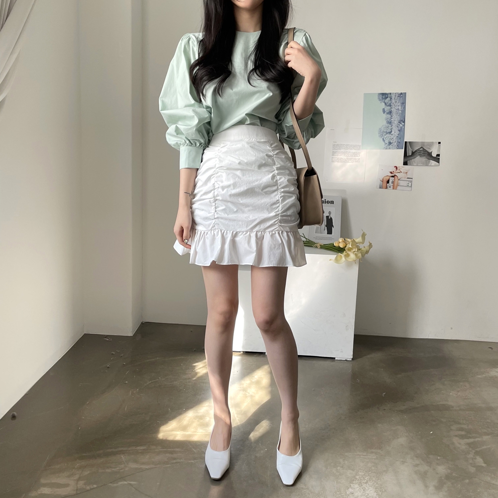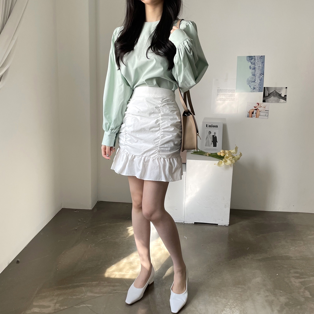 심플한 기본 디자인에 퍼프소매로 러블리함을 살려주고,