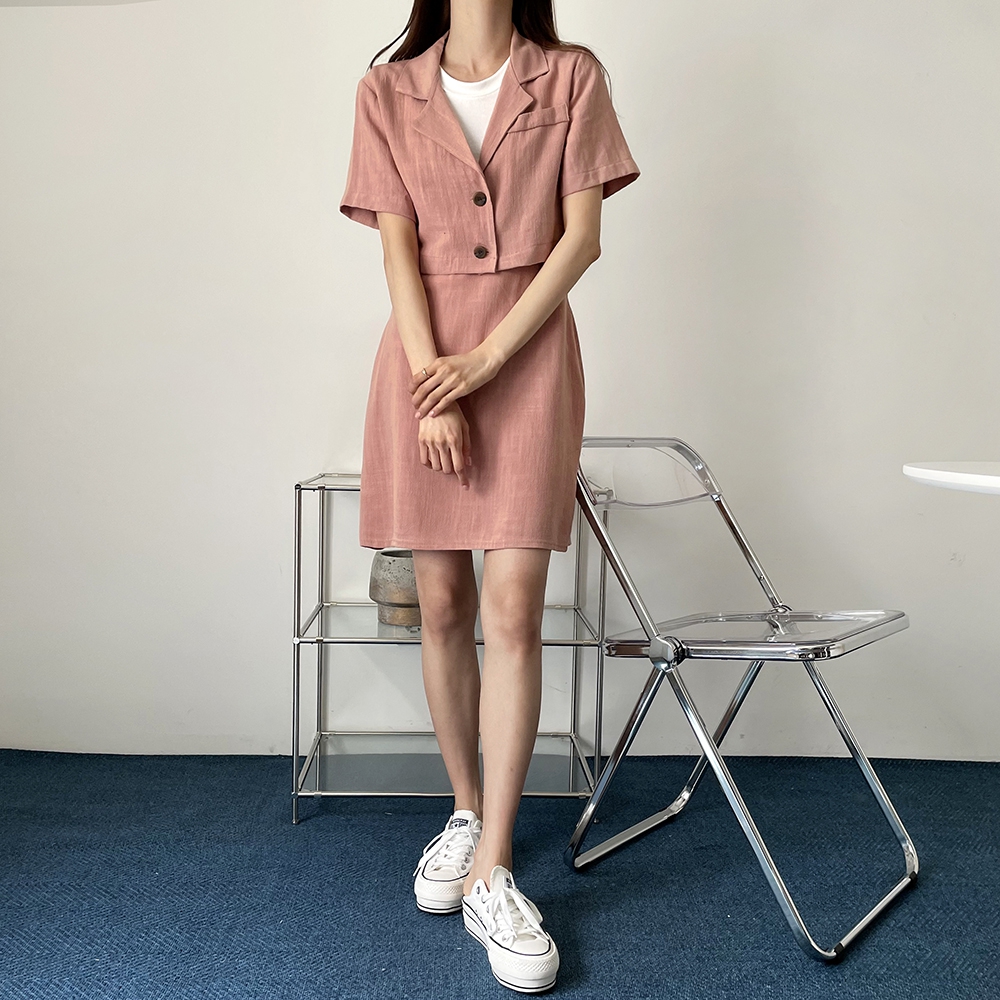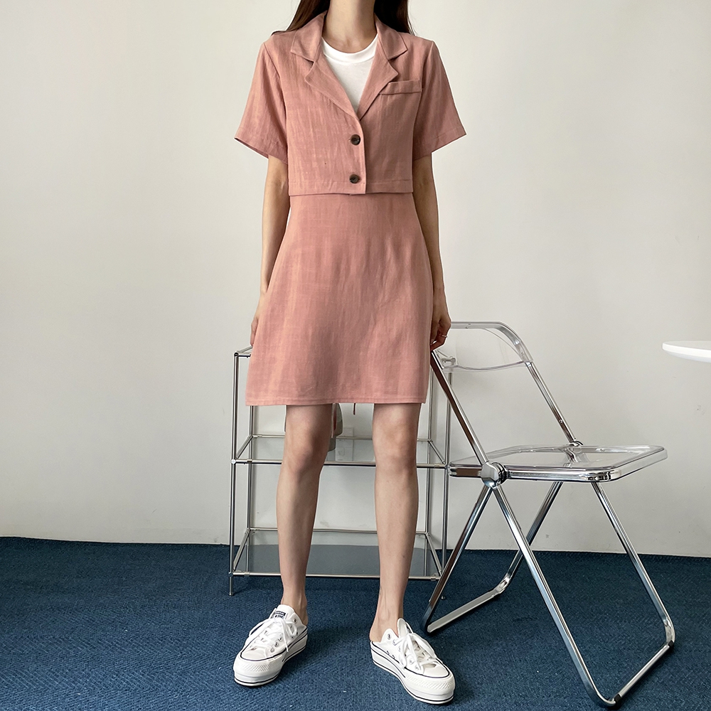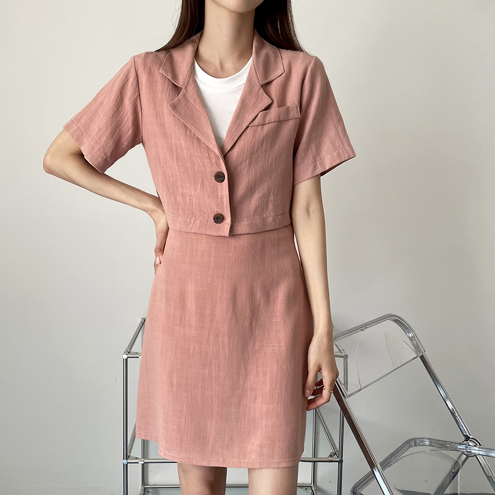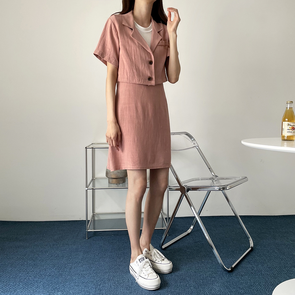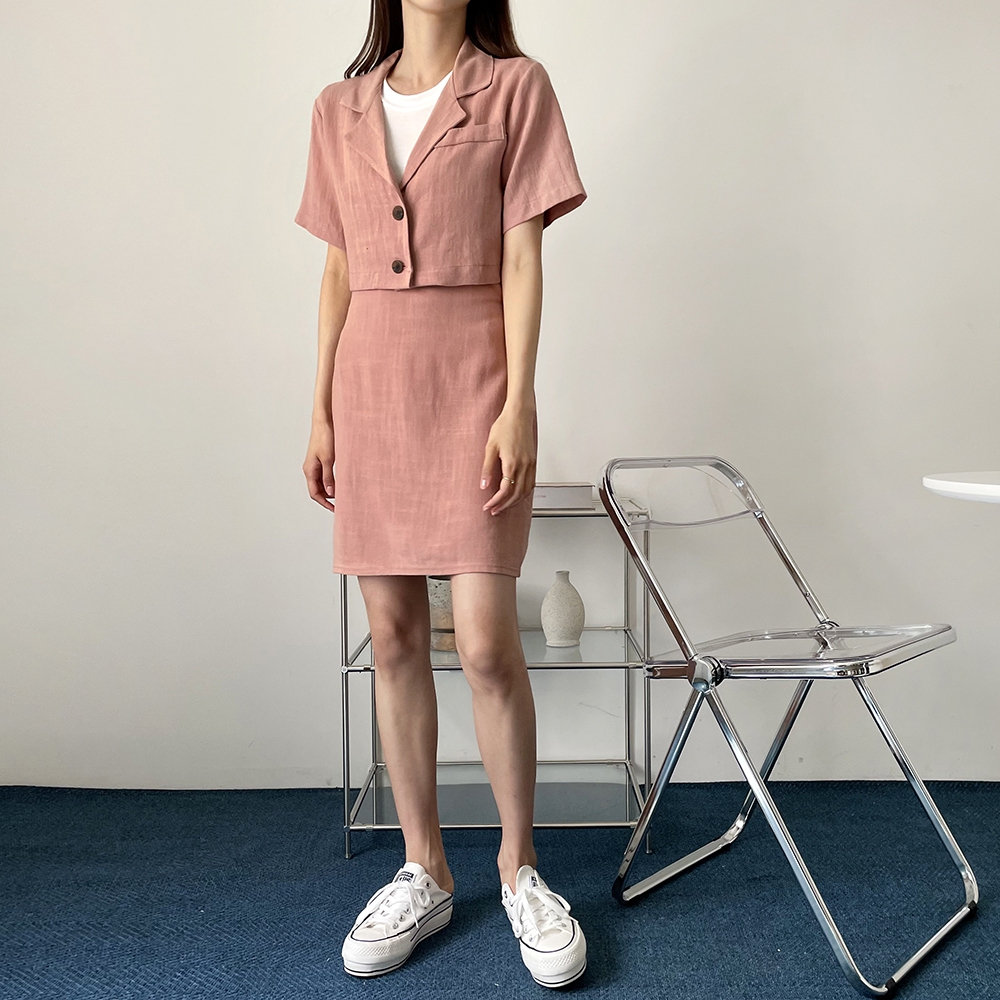- 여름 린넨 크롭 반팔 자켓