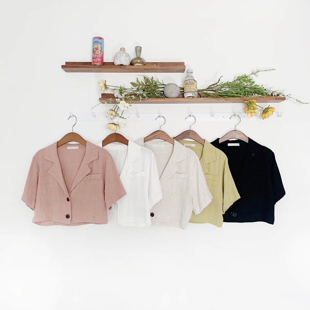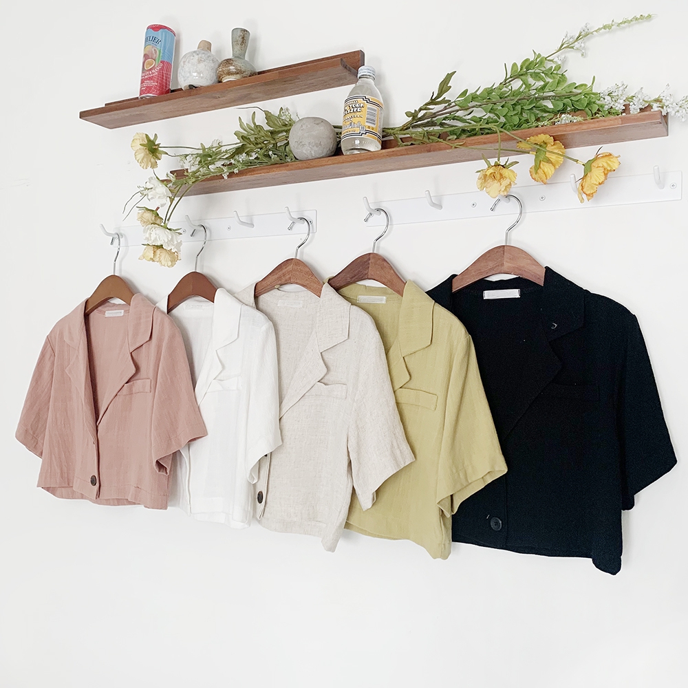 린넨 버튼 크롭 자켓이에요.