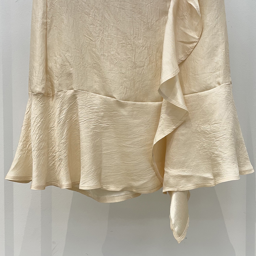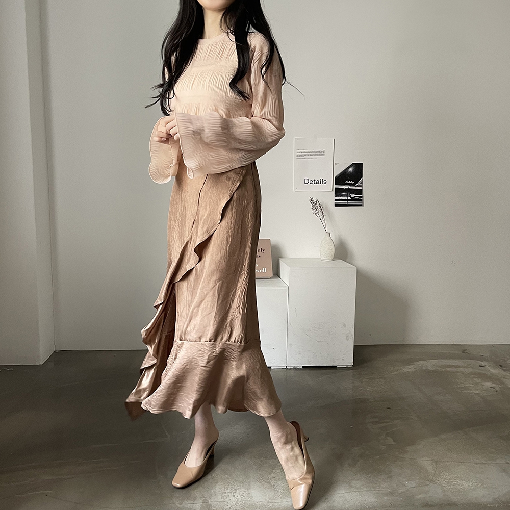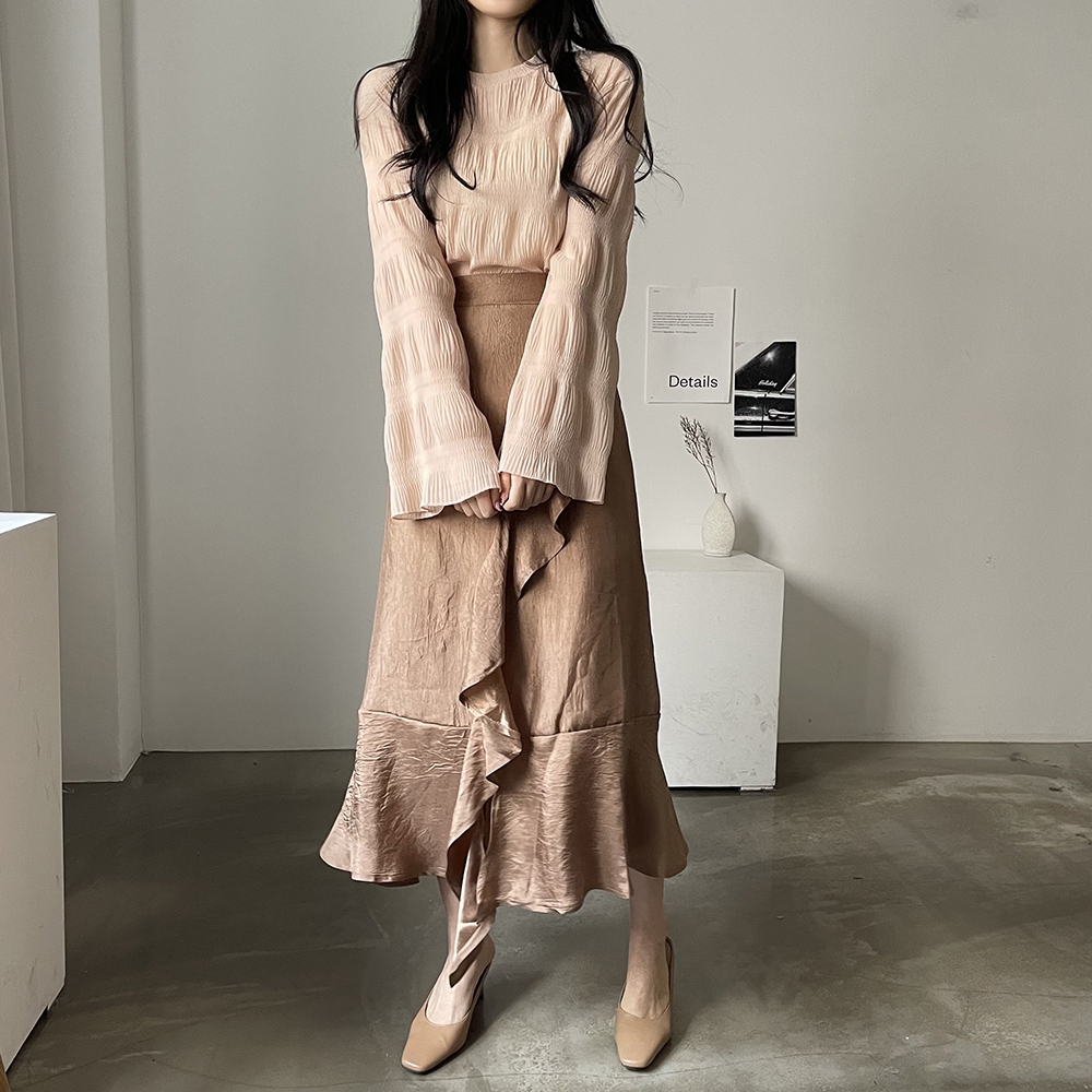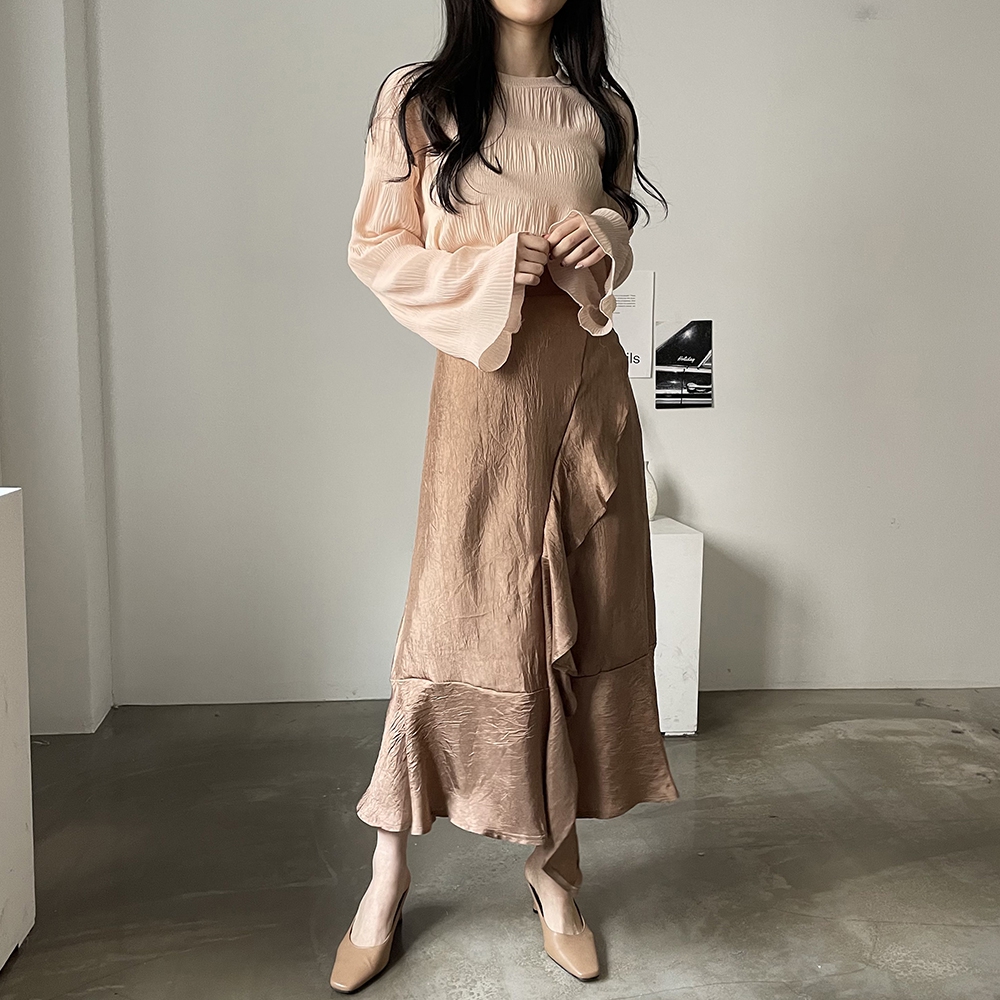 은은한 광택감이 우아한 샤틴 프릴 롱스커트에요.