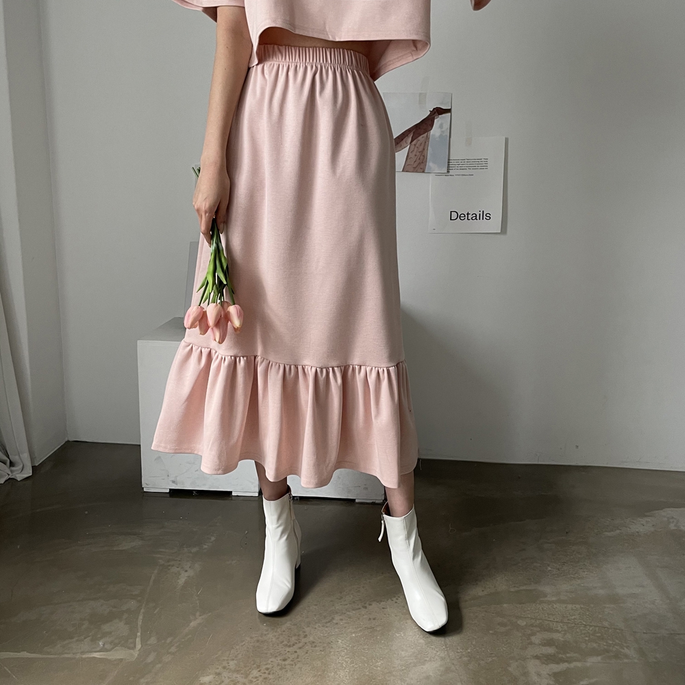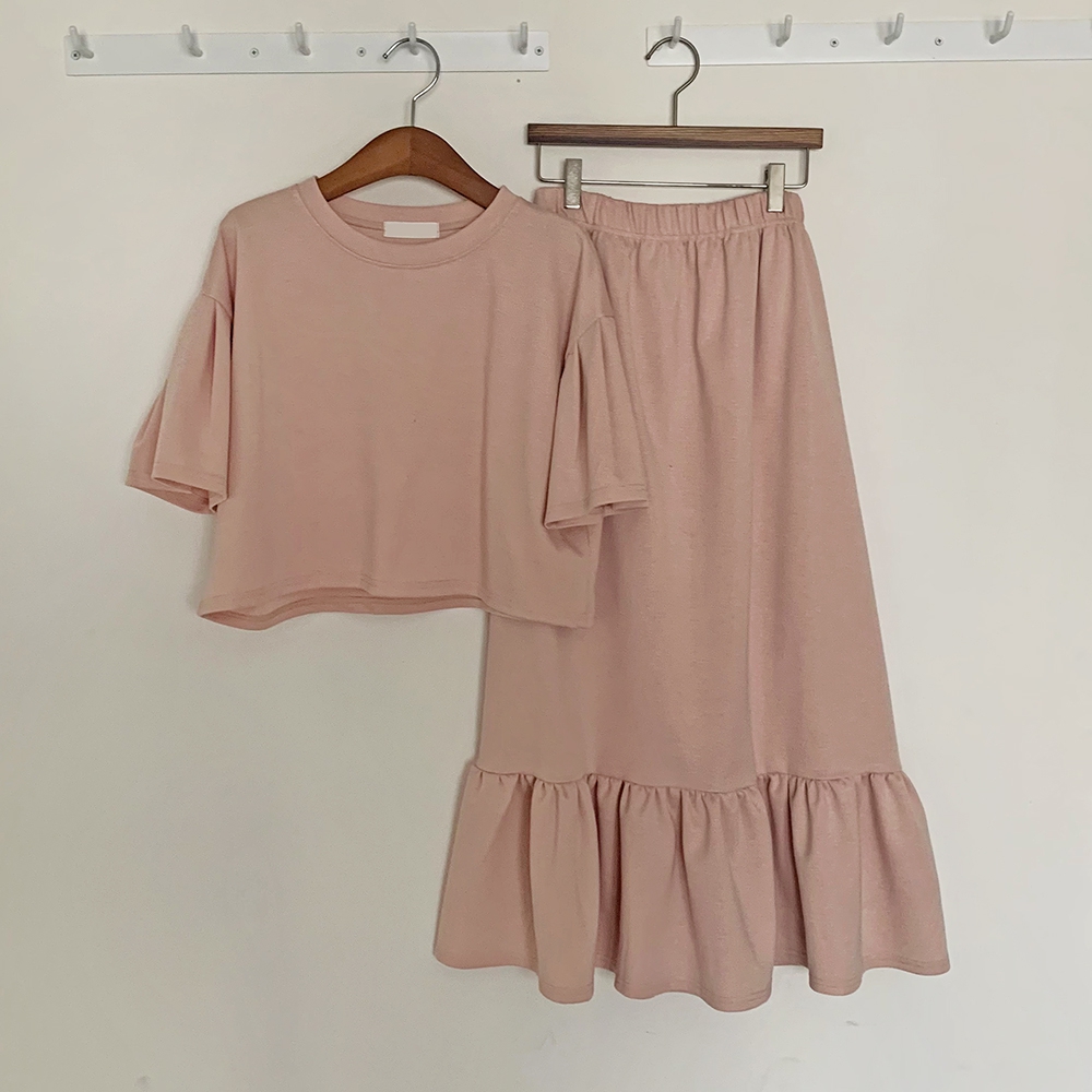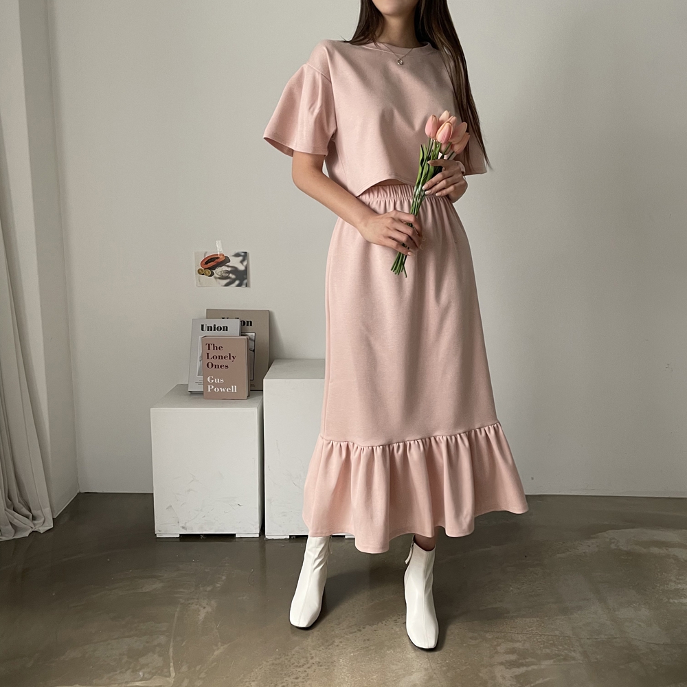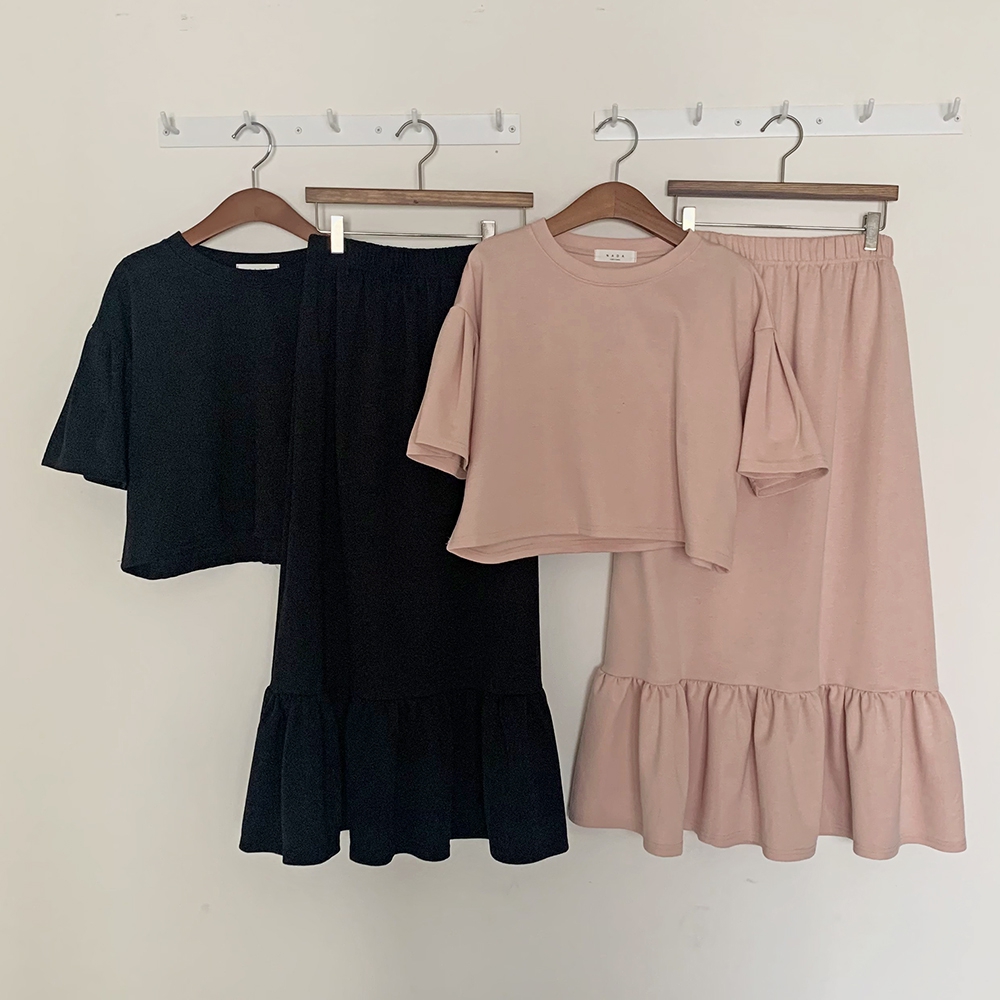 - 러블리 크롭티 + 롱프릴 밴딩 스커트 세트