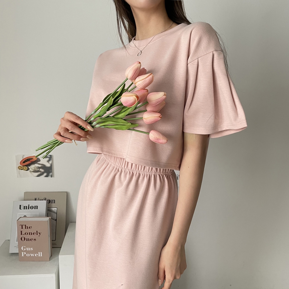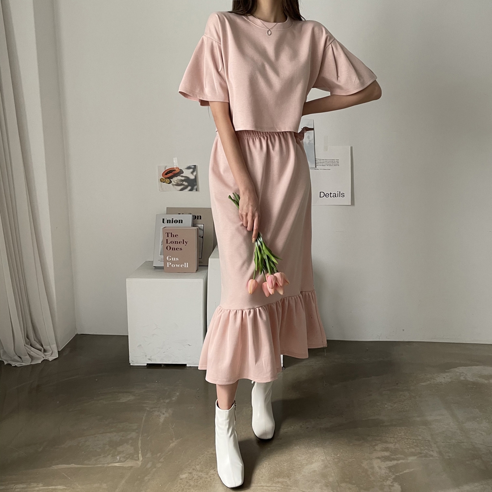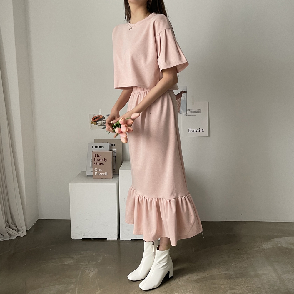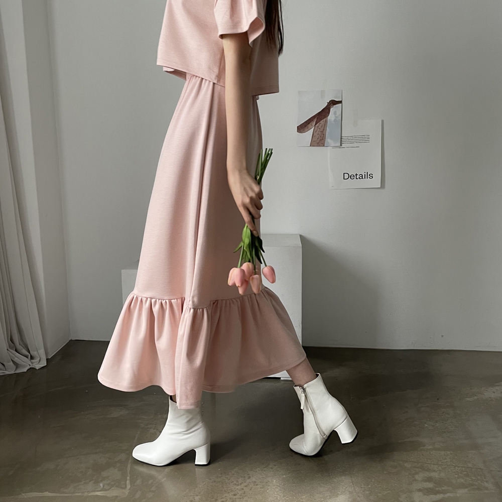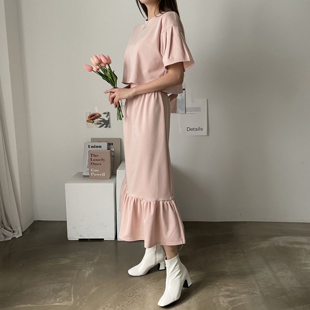 - 러블리 크롭티 + 롱프릴 밴딩 스커트 세트