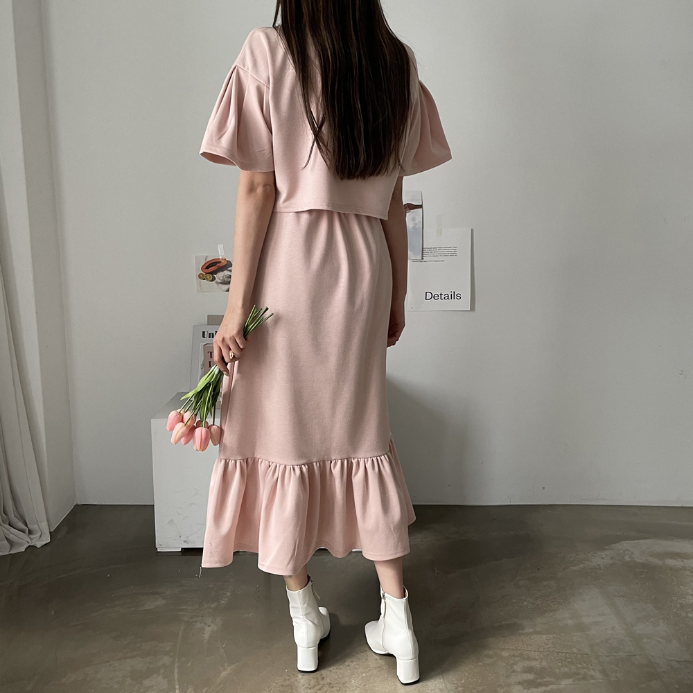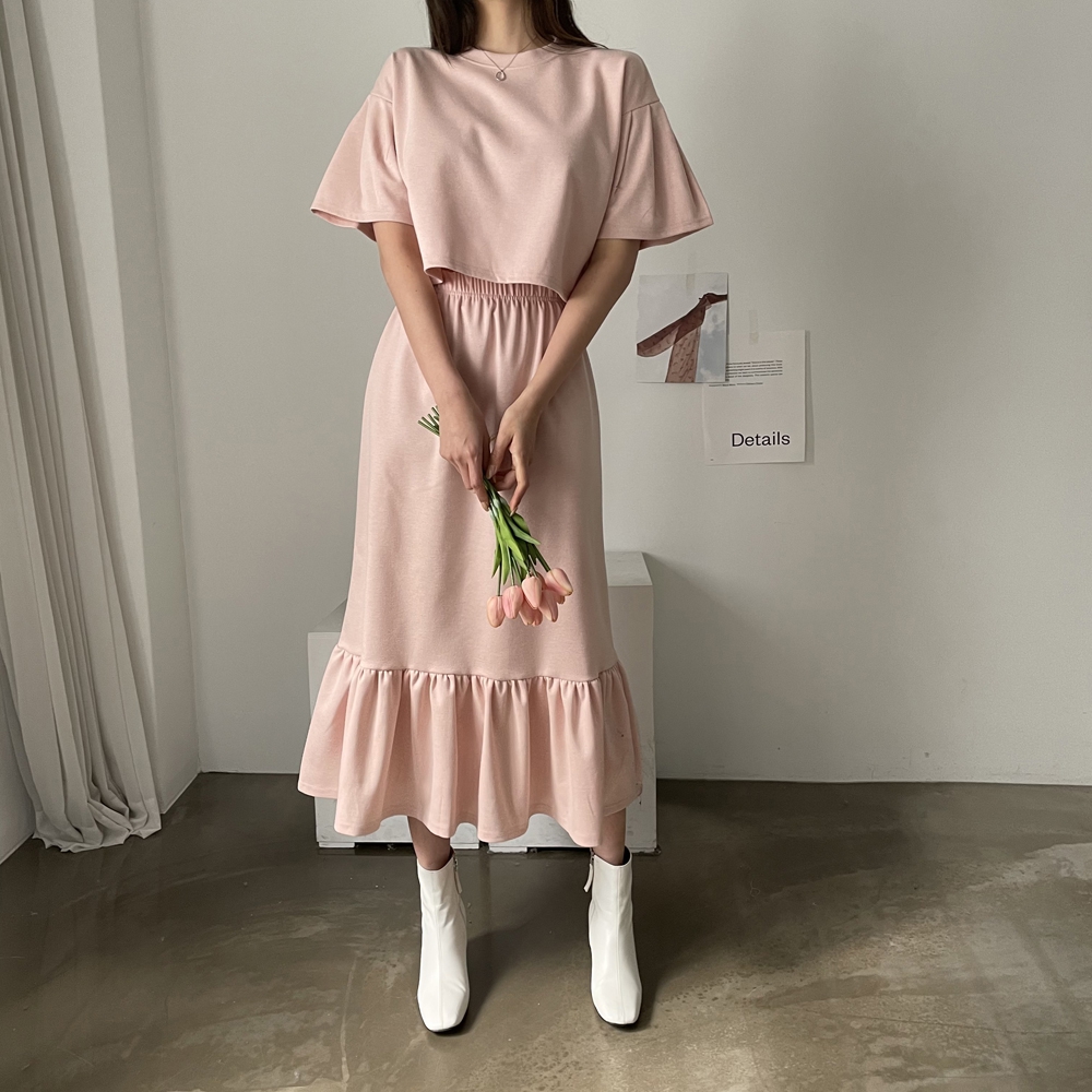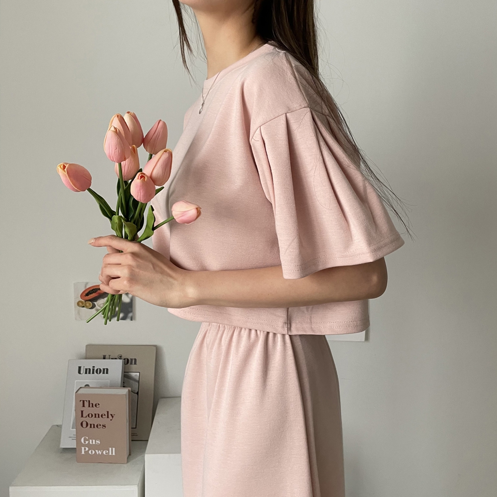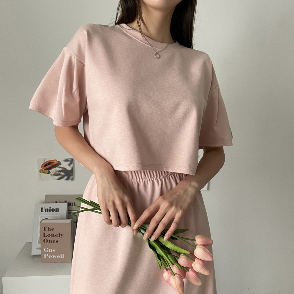 - 러블리 크롭티 + 롱프릴 밴딩 스커트 세트
