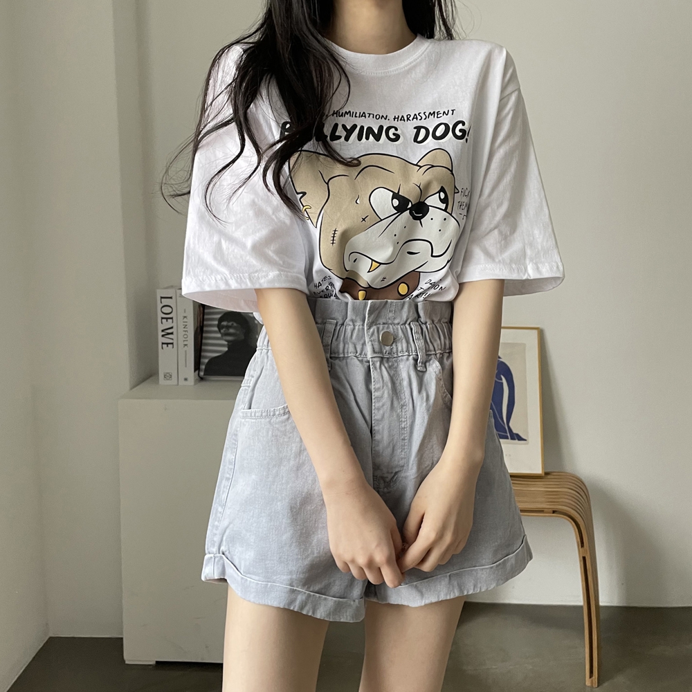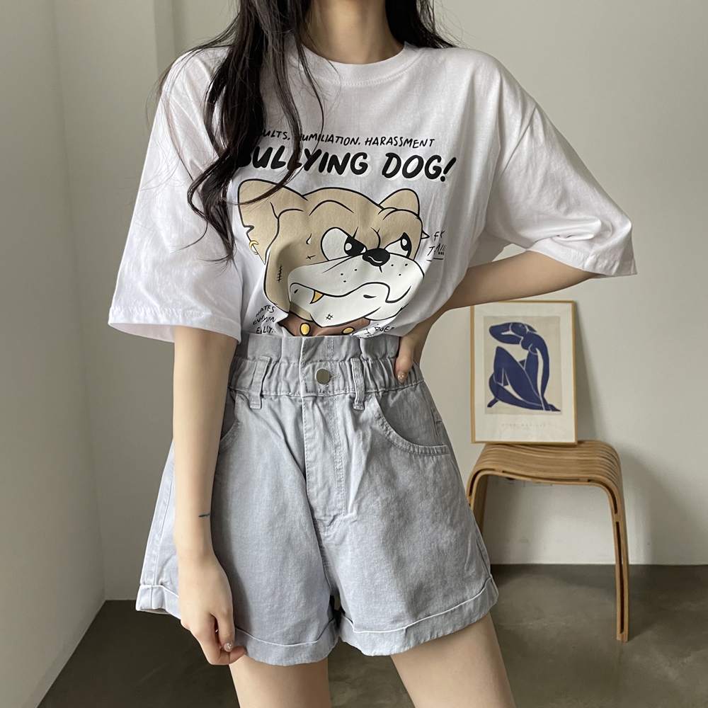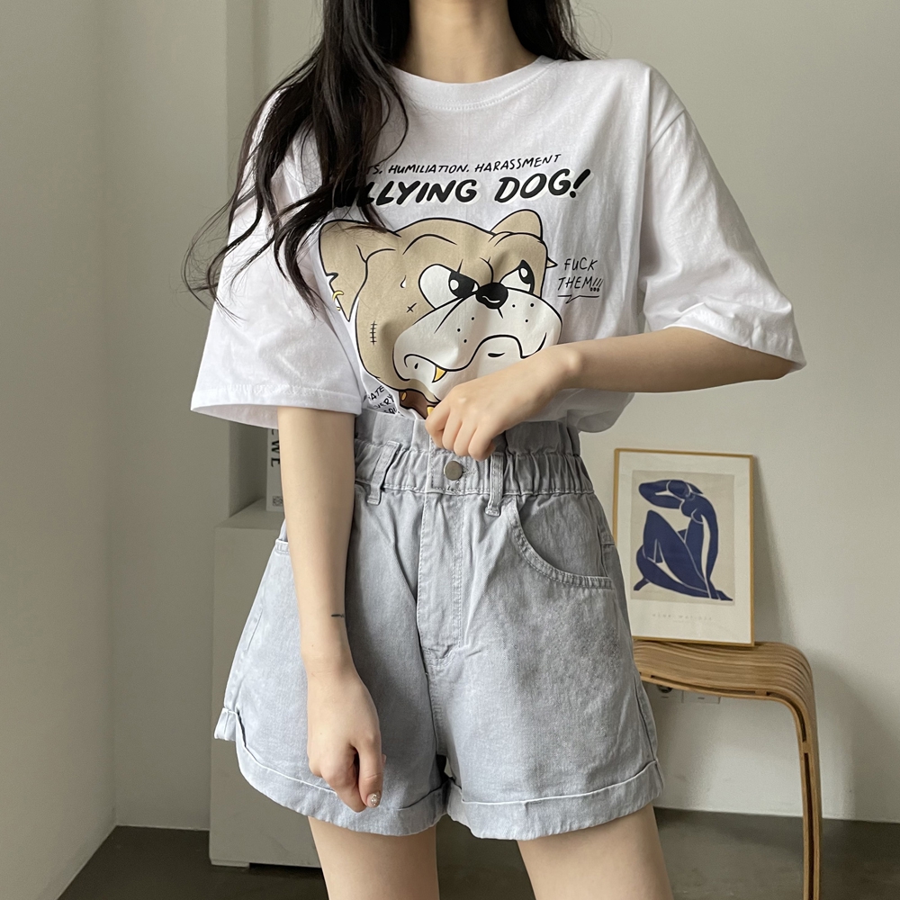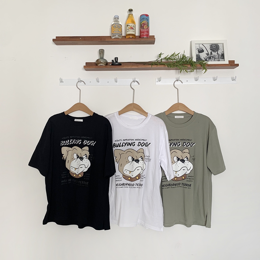 - 불독 프린팅 라운드 반팔 티셔츠 3color