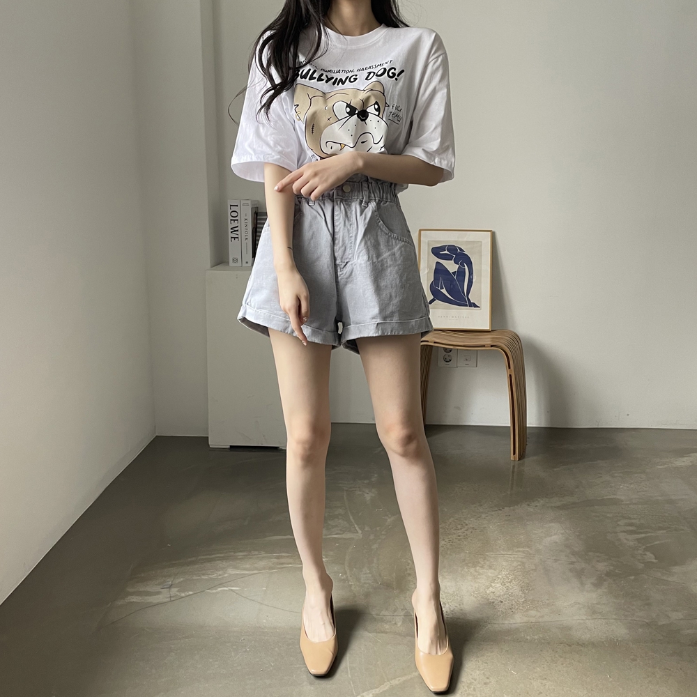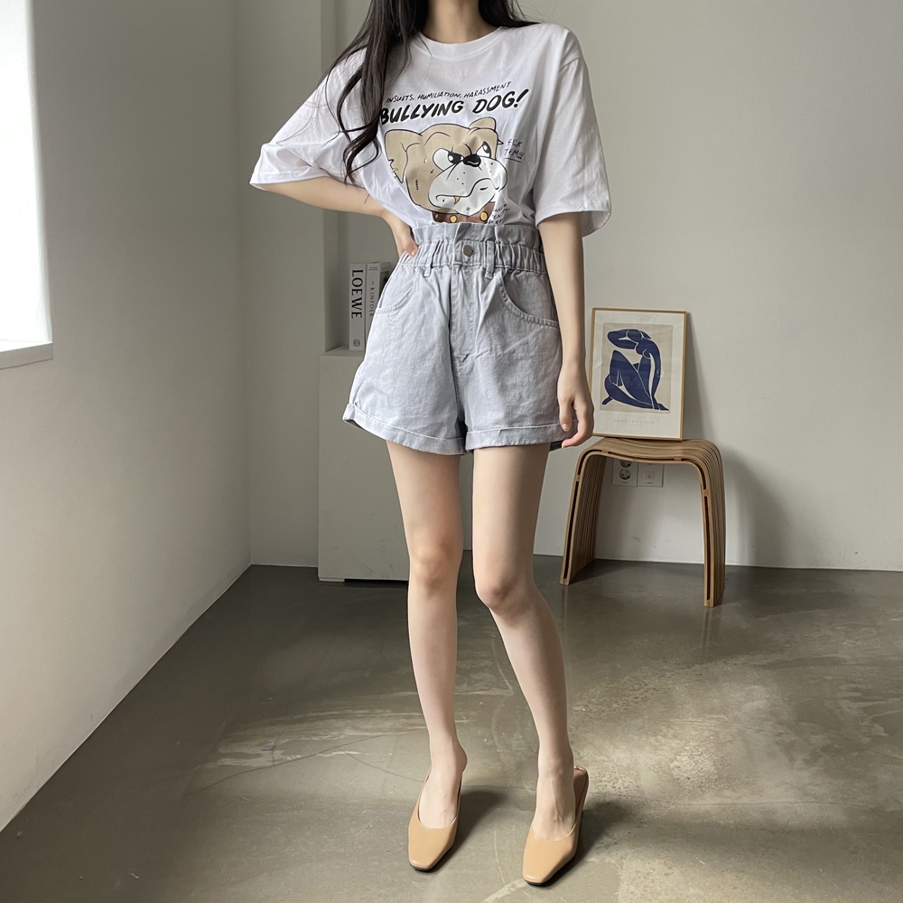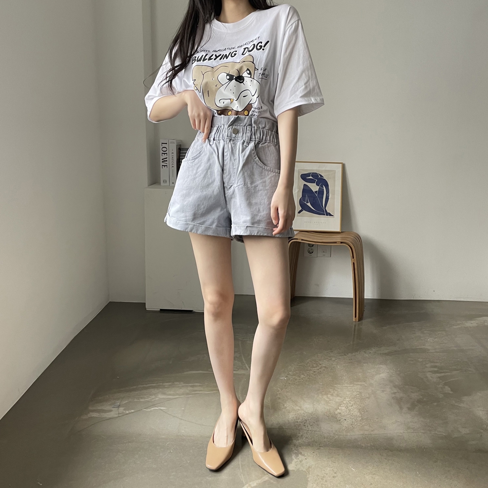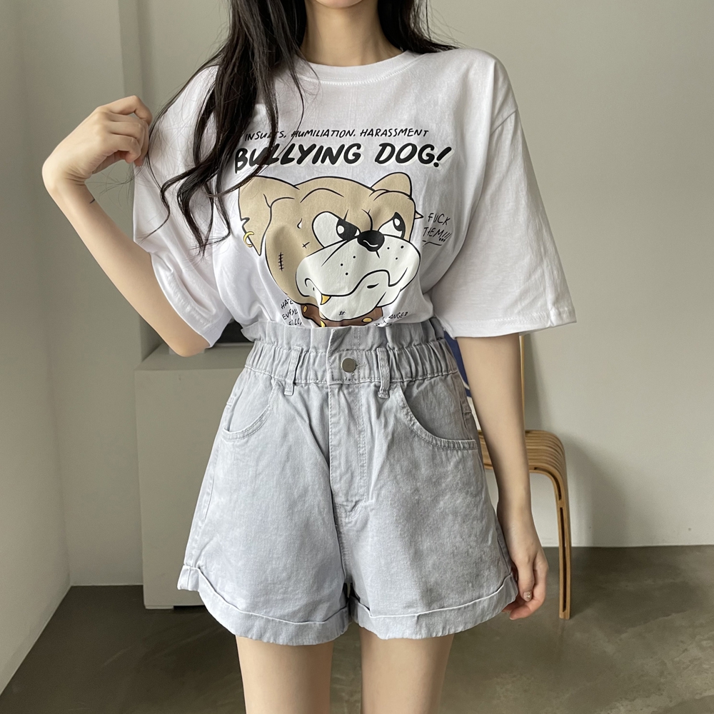 - 불독 프린팅 라운드 반팔 티셔츠 3color