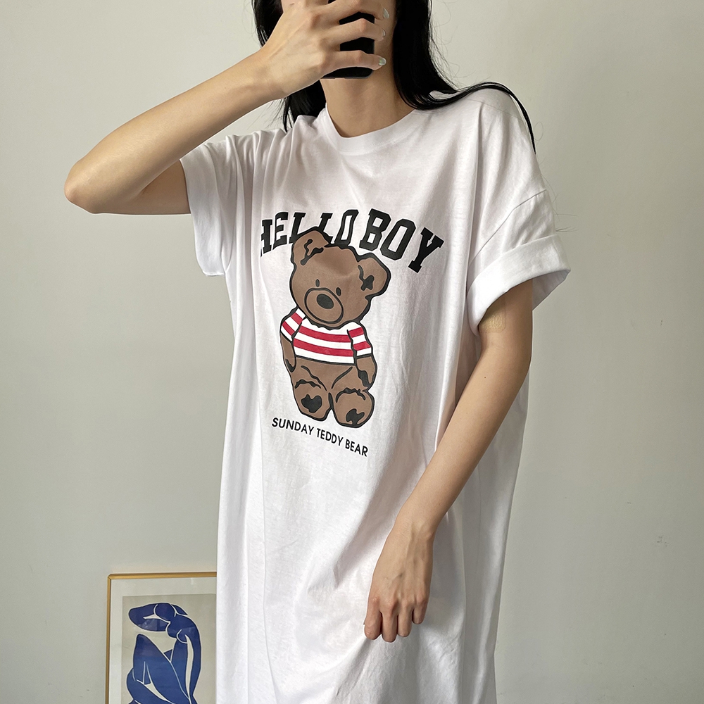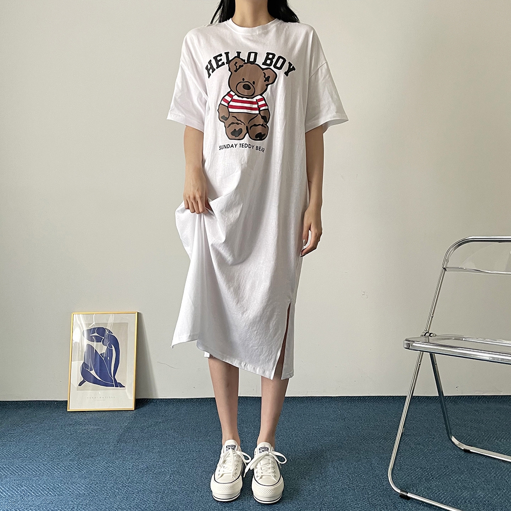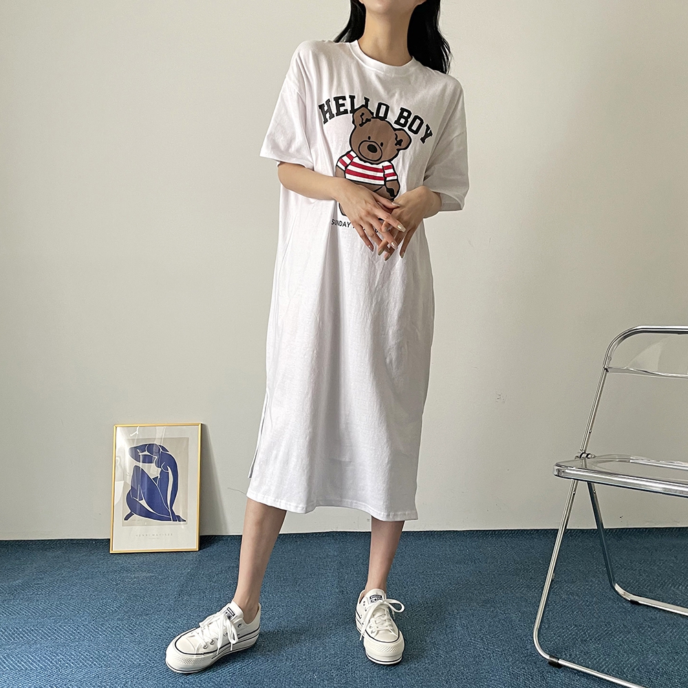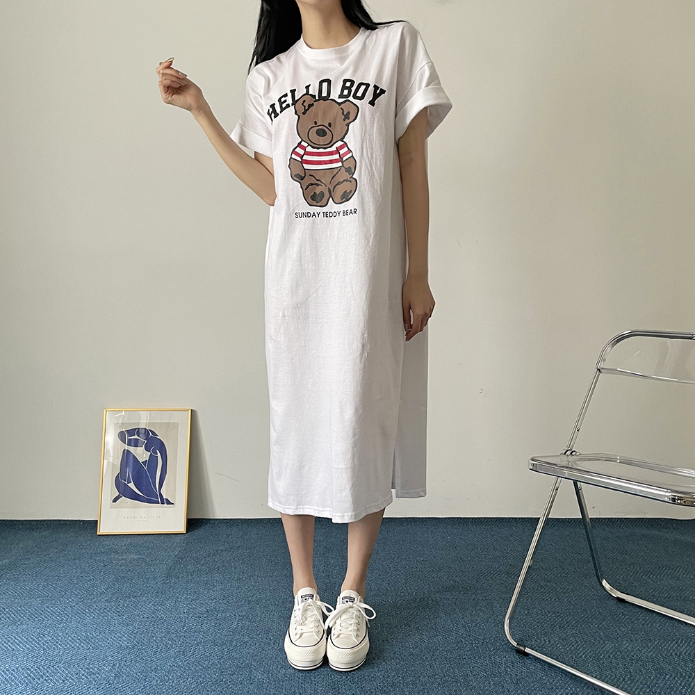 베어 롱 반팔 원피스