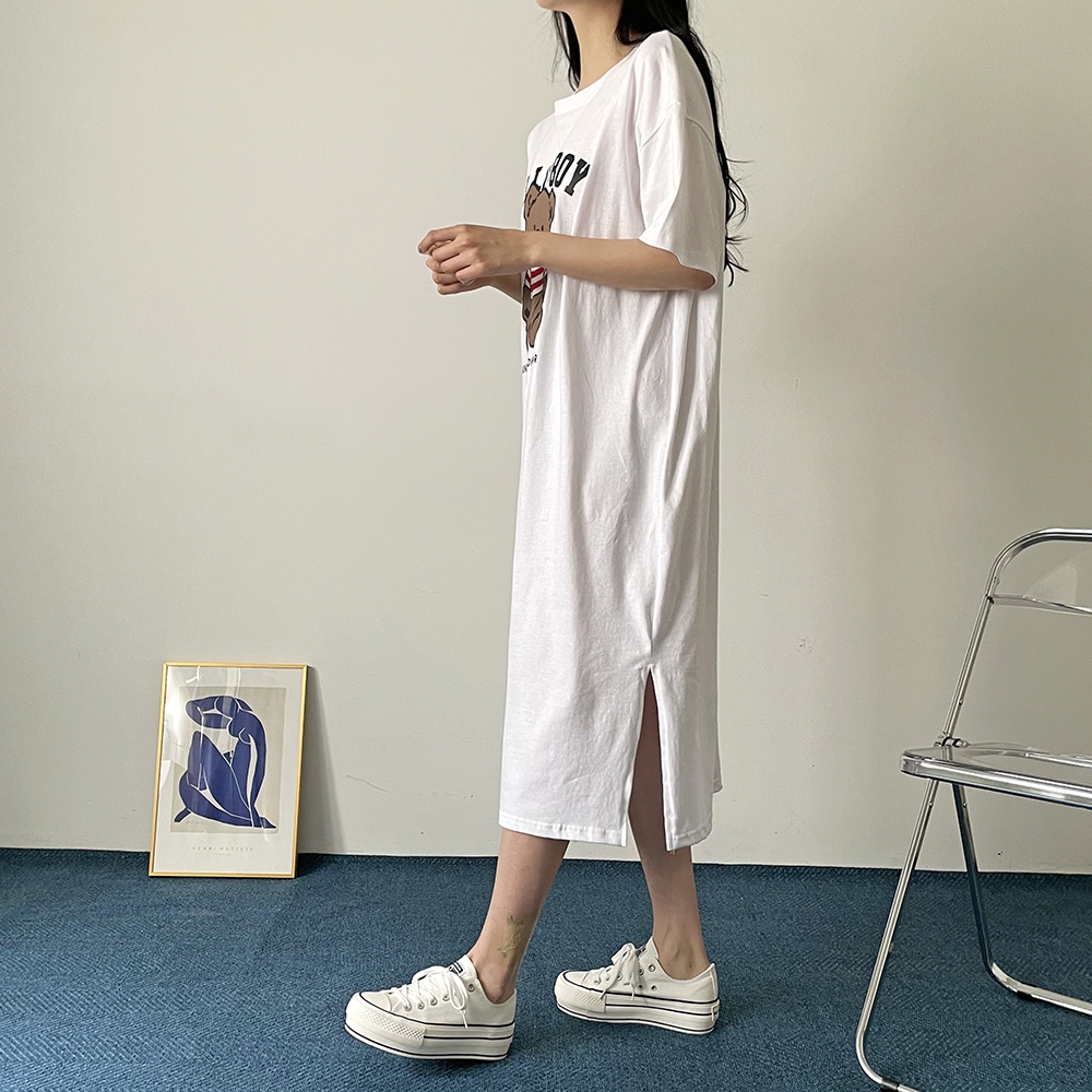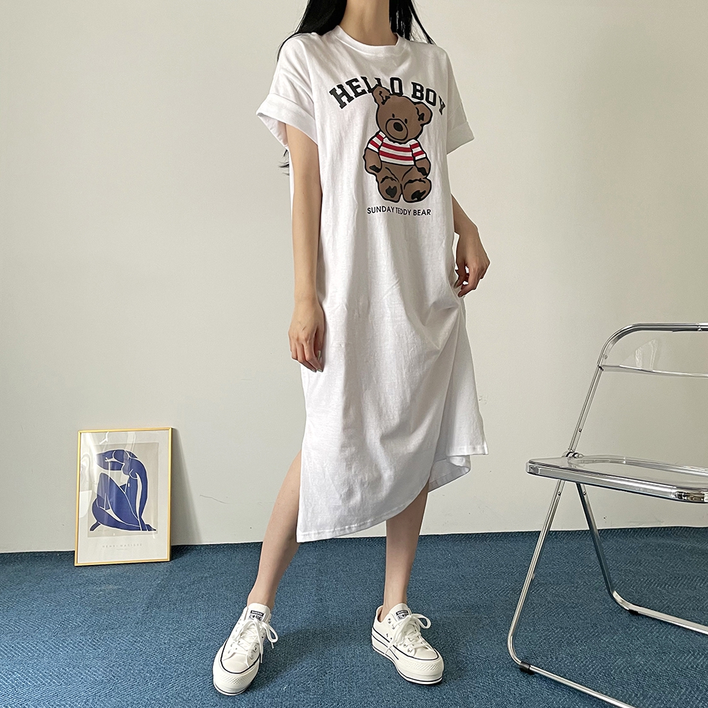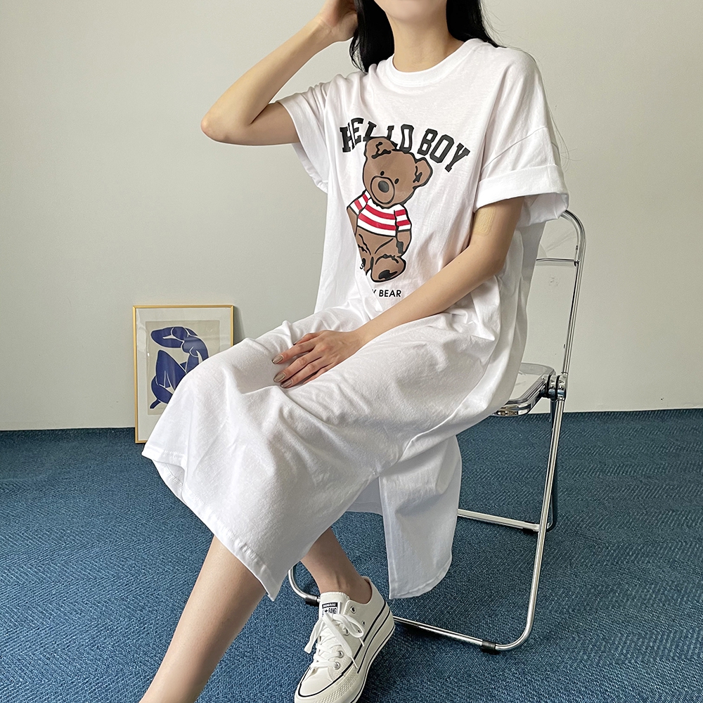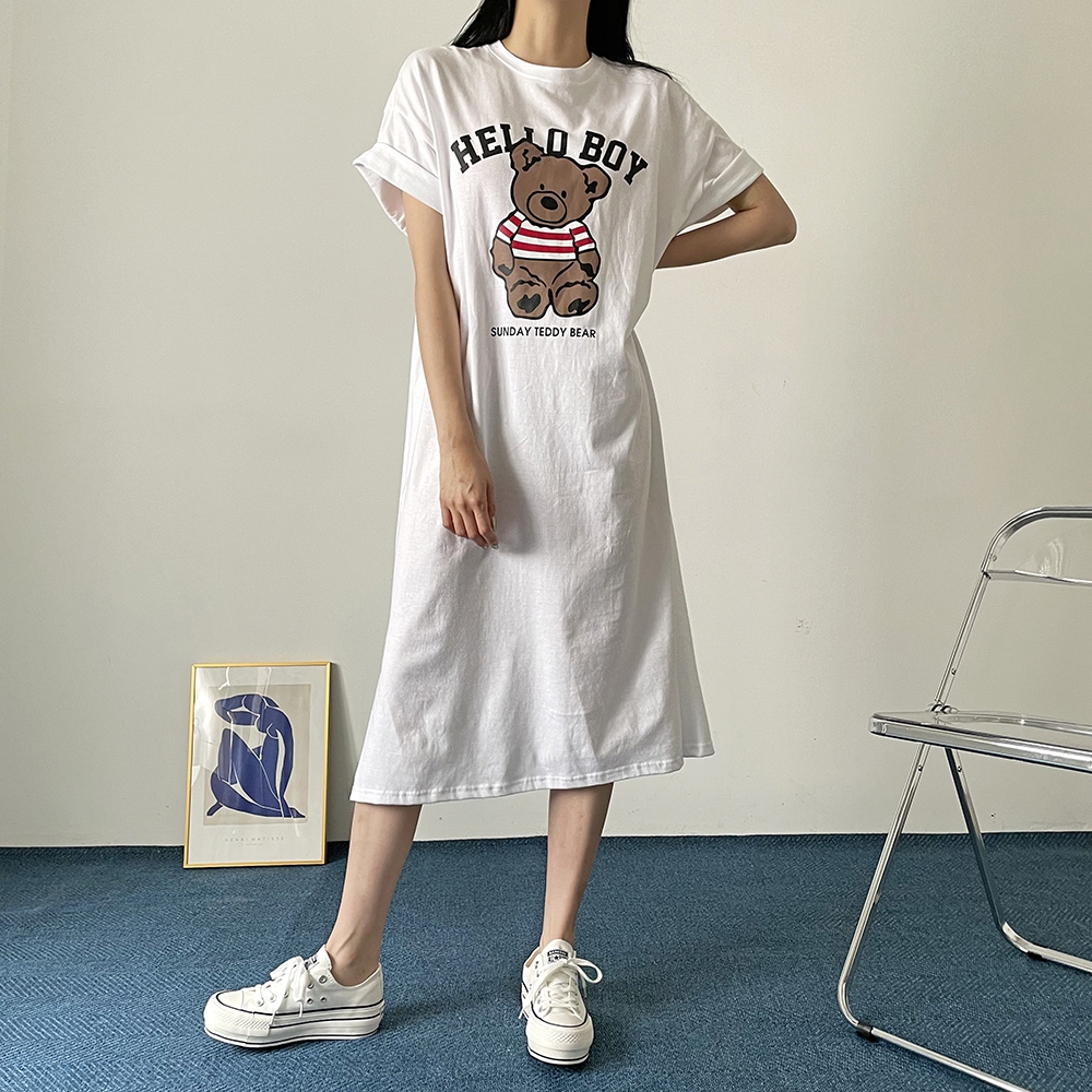 베어 롱 반팔 원피스
