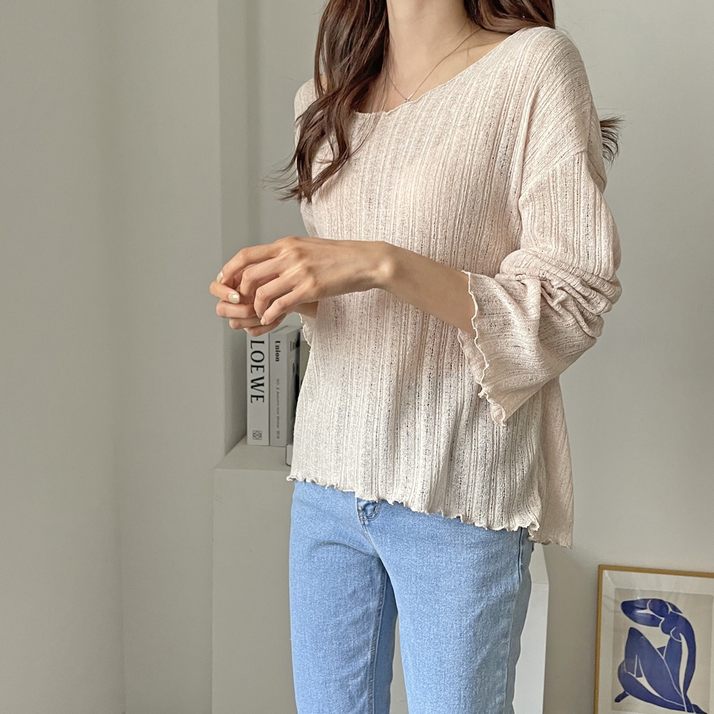소매와 넥라인, 밑단에 물결 디테일이 더해져