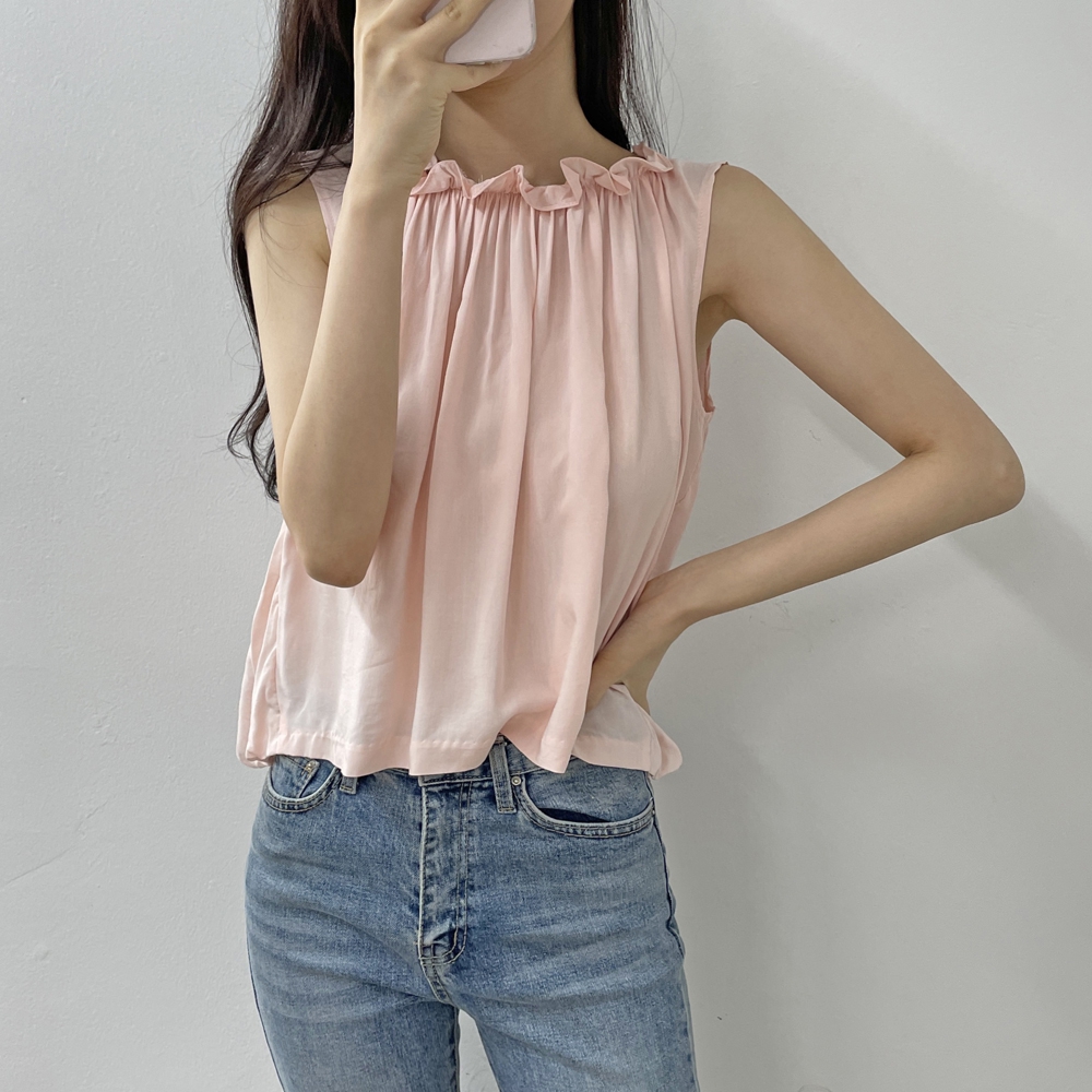 셔링 프릴 나시 블라우스