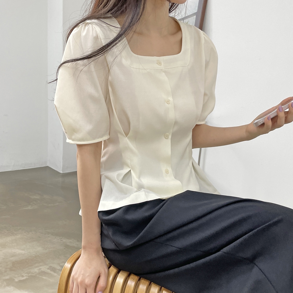• 스퀘어 핀턱 블라우스