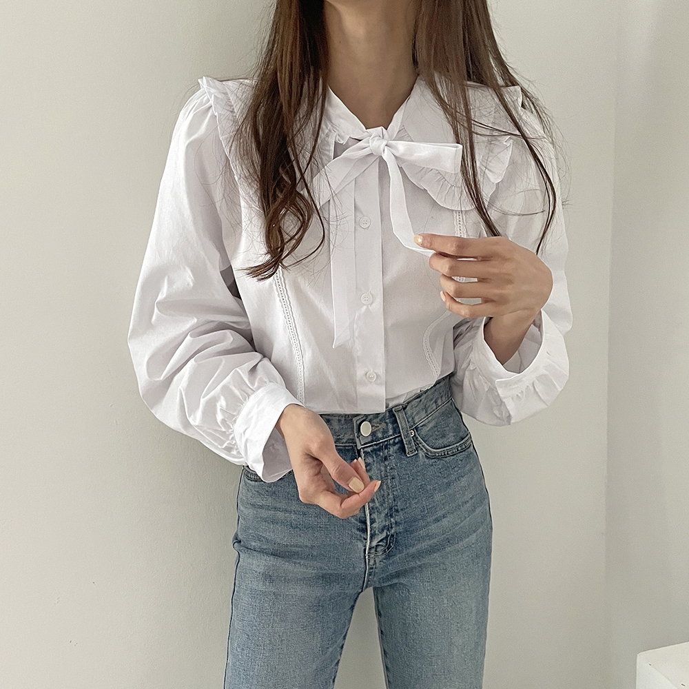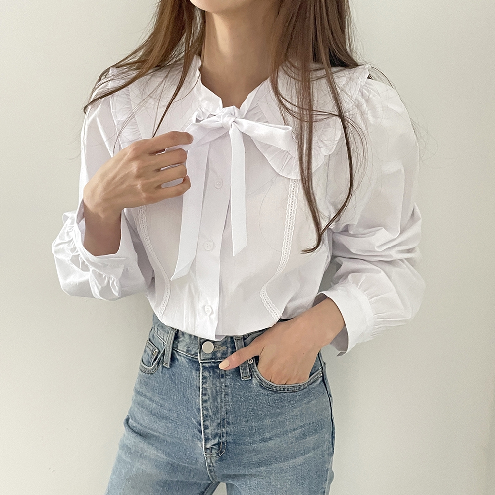 카라와 함께 더해진 리본디테일까지 보다 귀엽고 여성스러운 느낌으로 착용되요!