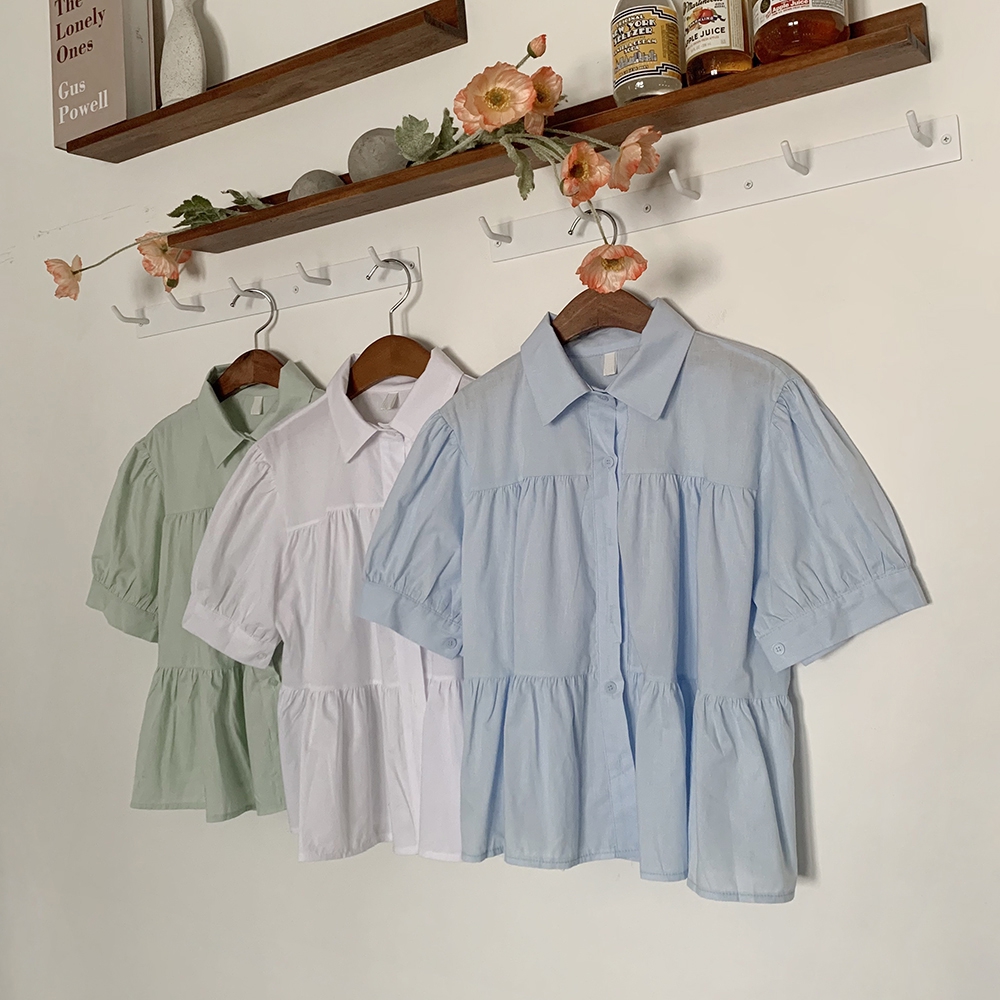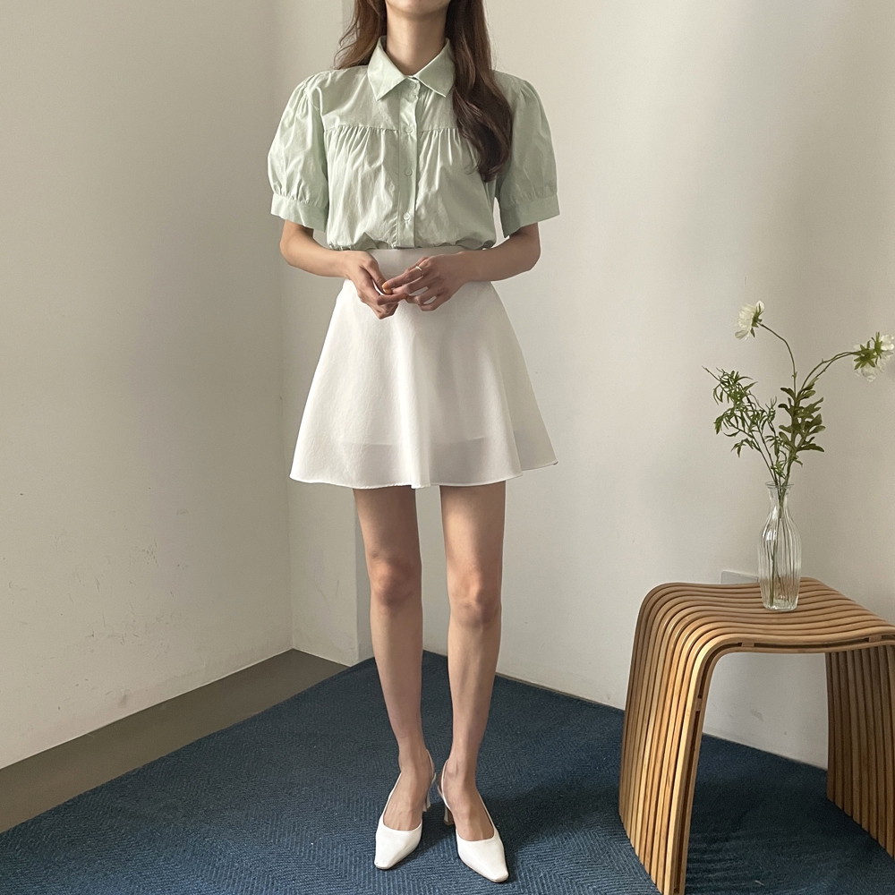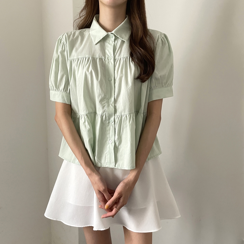 - 셔링 퍼프 블라우스