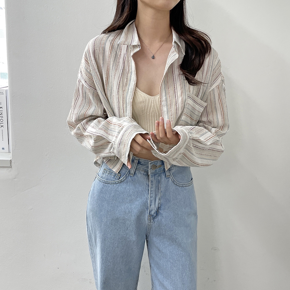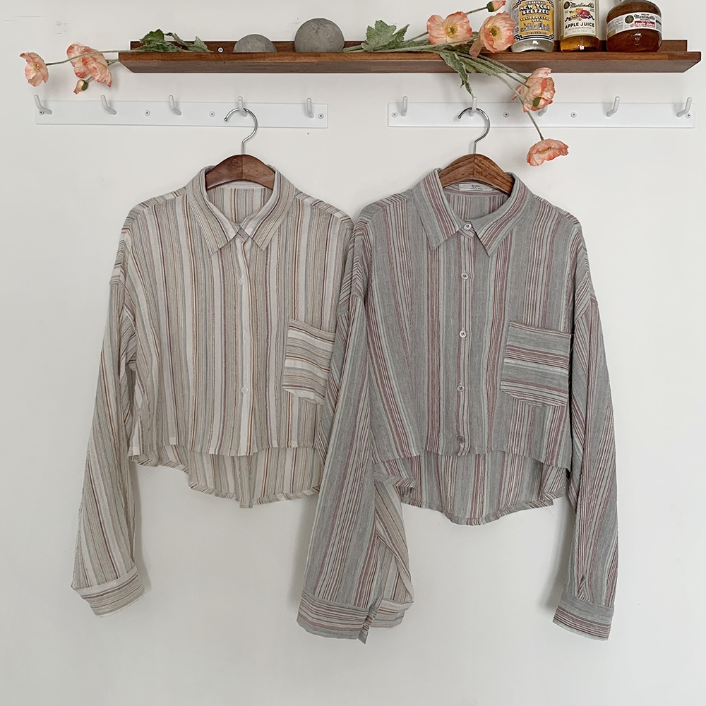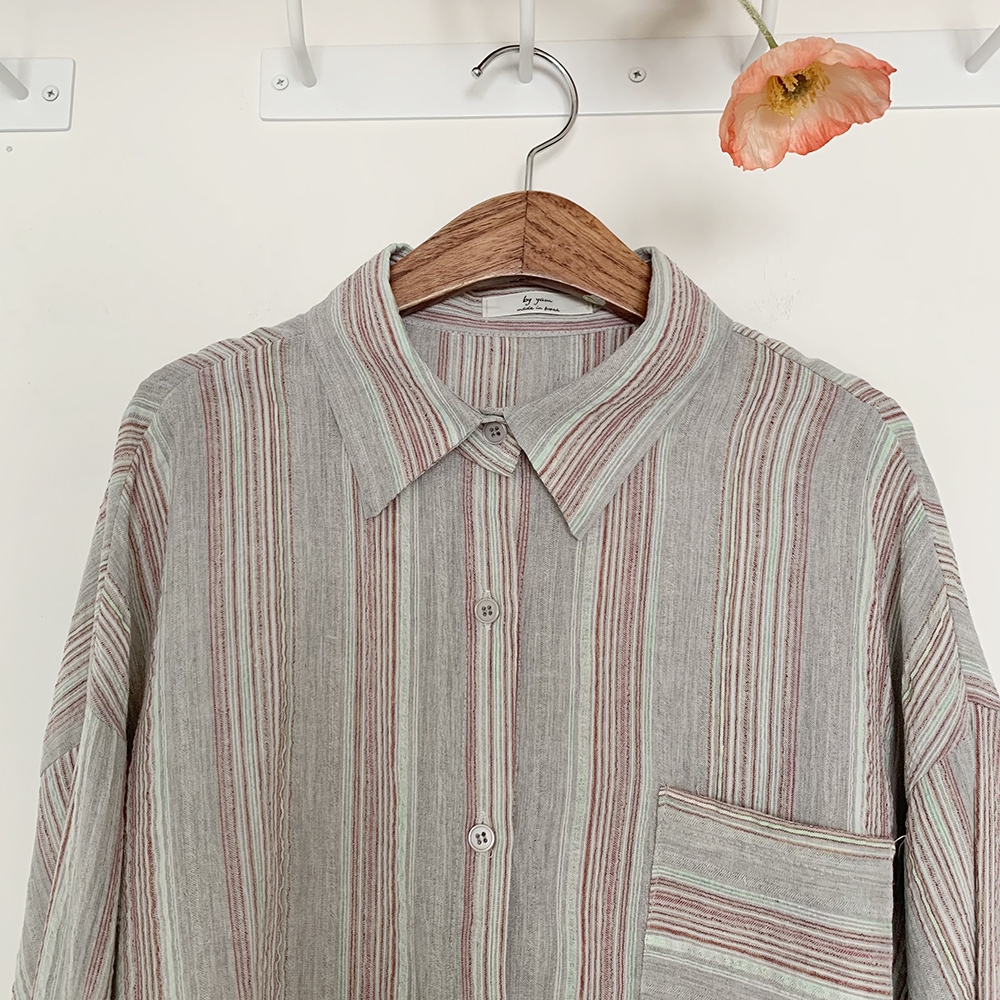 [신상] 커버업 스트라이프 빈티지 셔츠