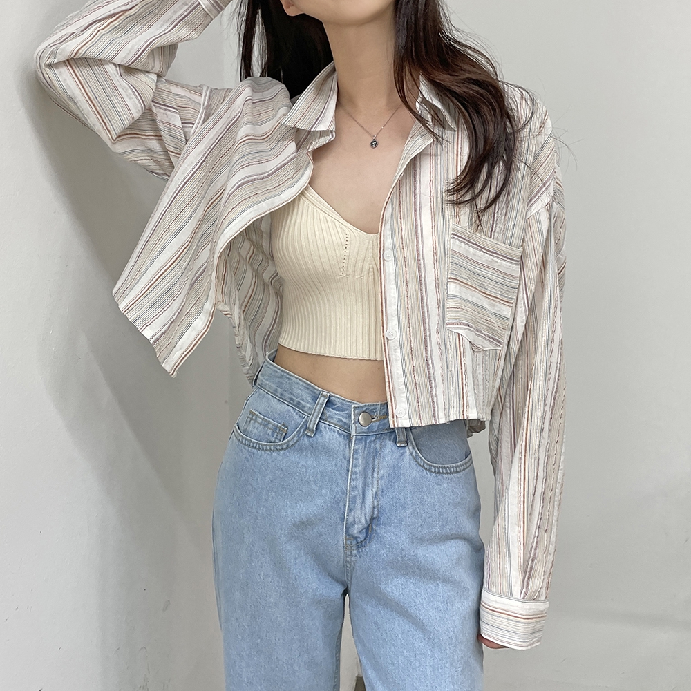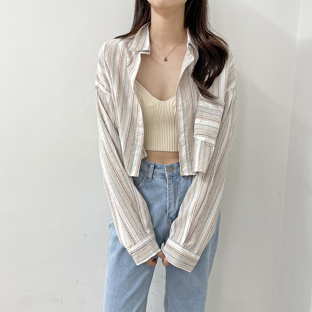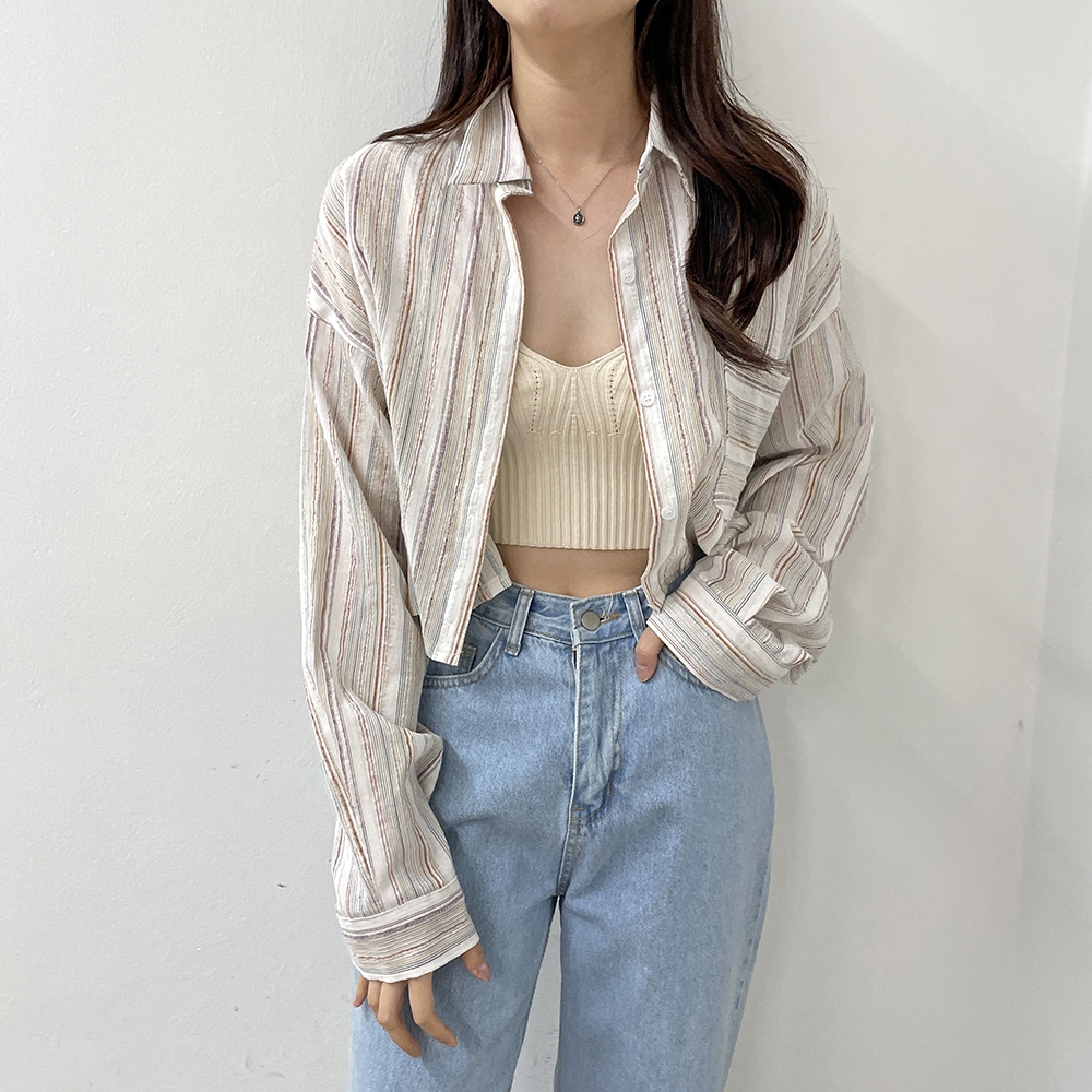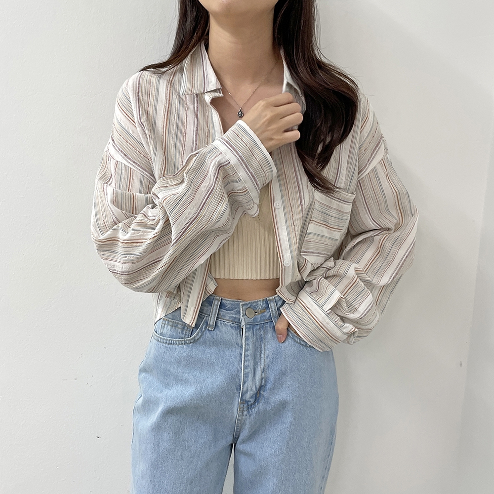 [신상] 커버업 스트라이프 빈티지 셔츠