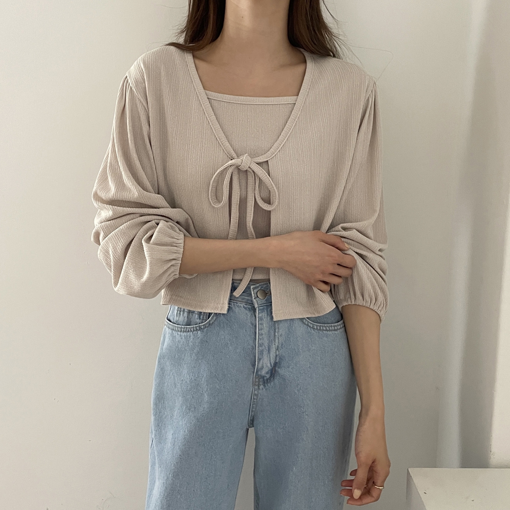 • 리본 가디건 세트