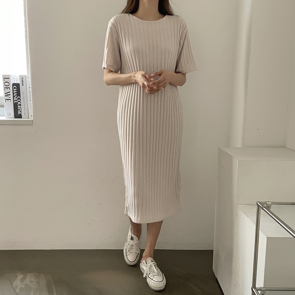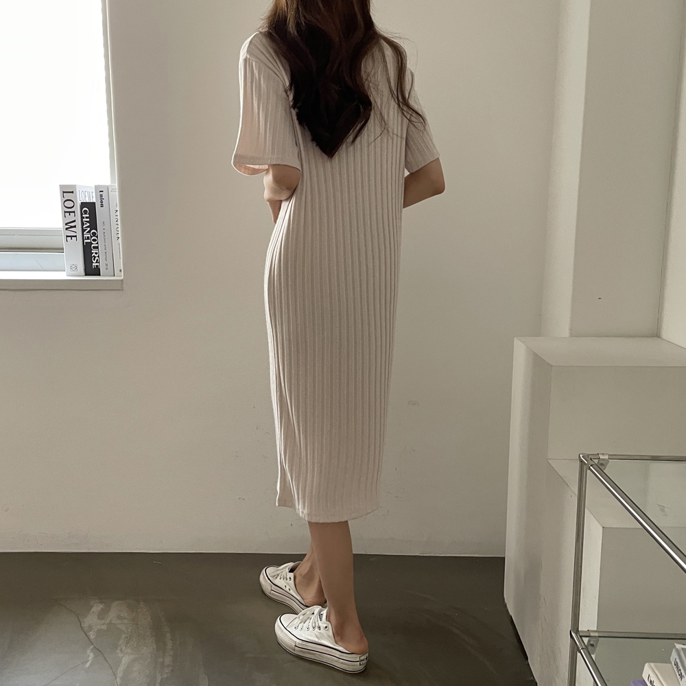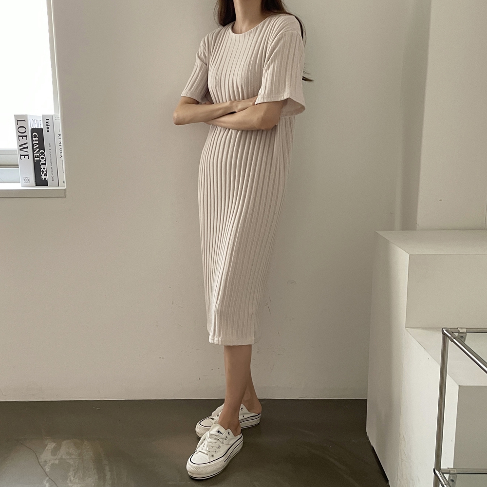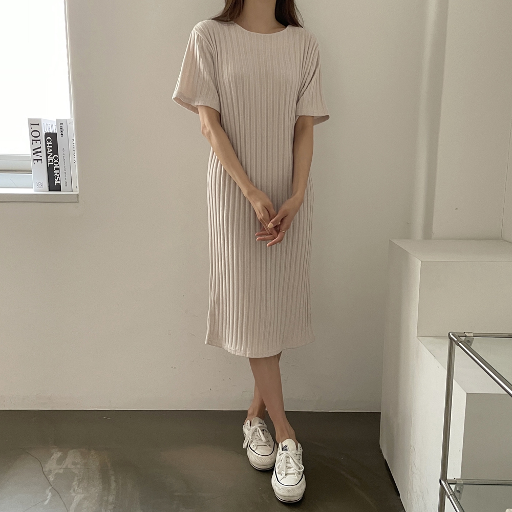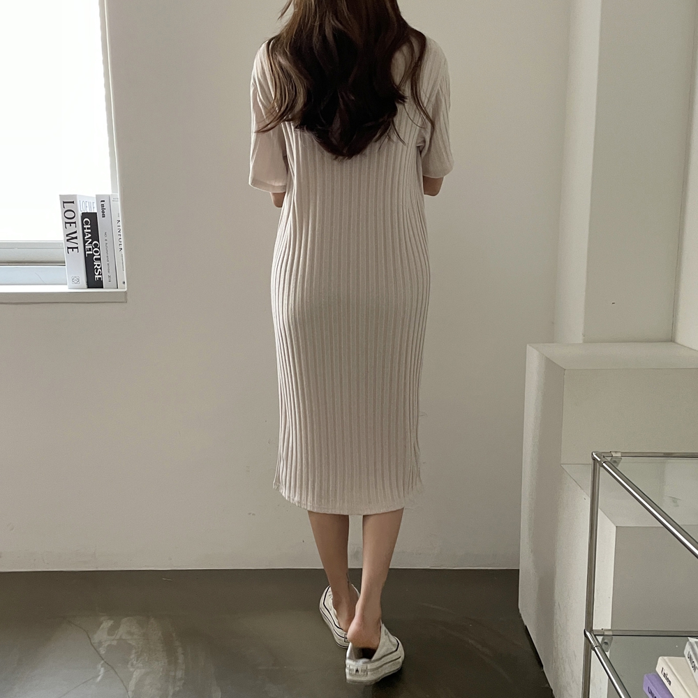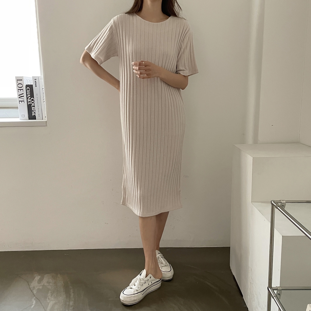 • 반팔 골지 롱 원피스