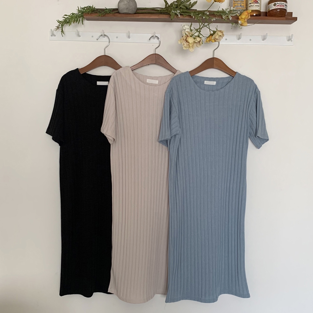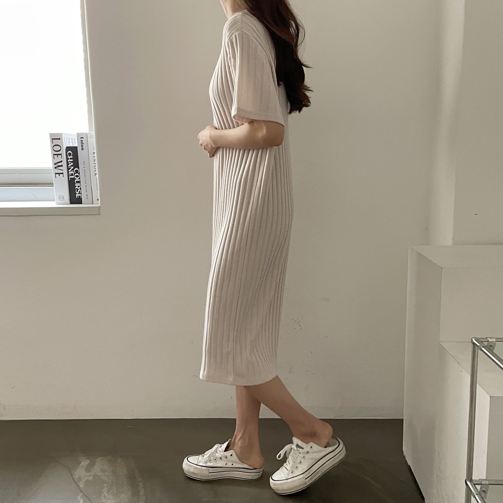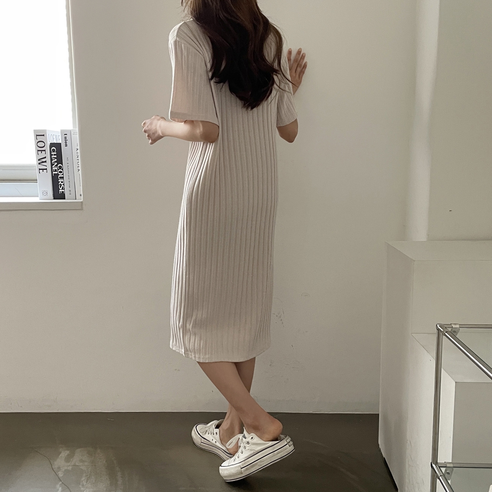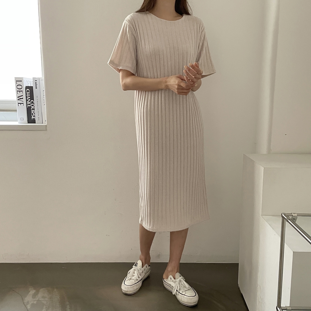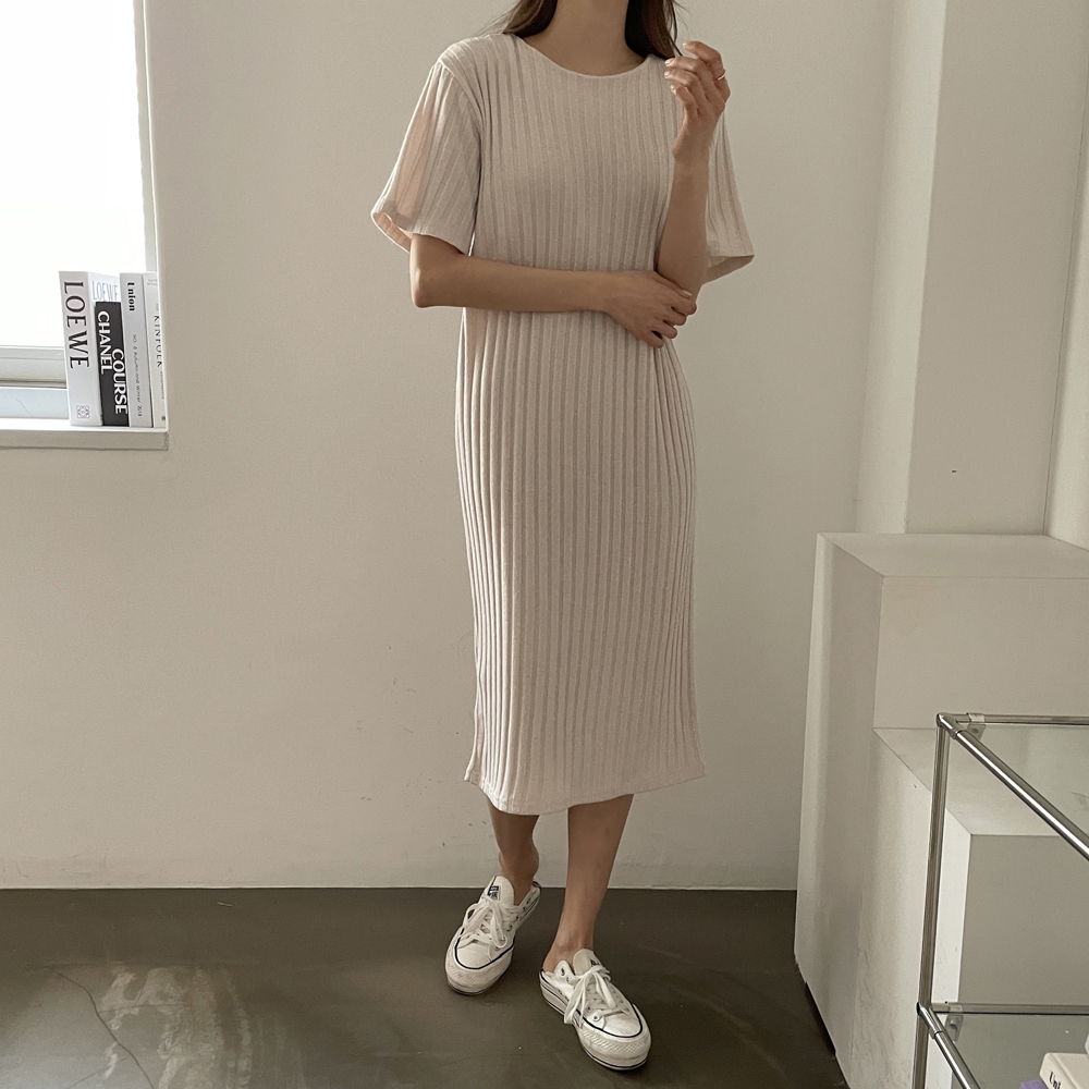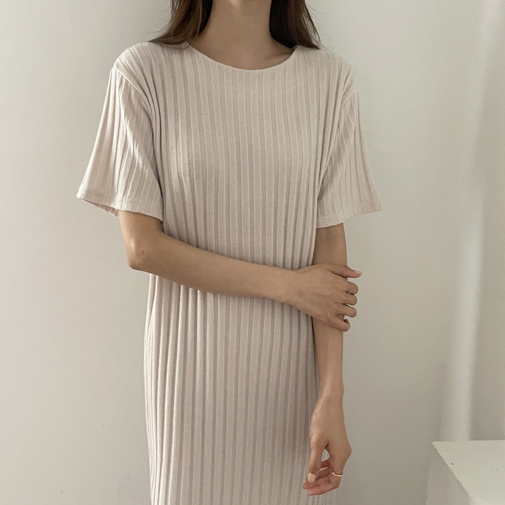 • 반팔 골지 롱 원피스