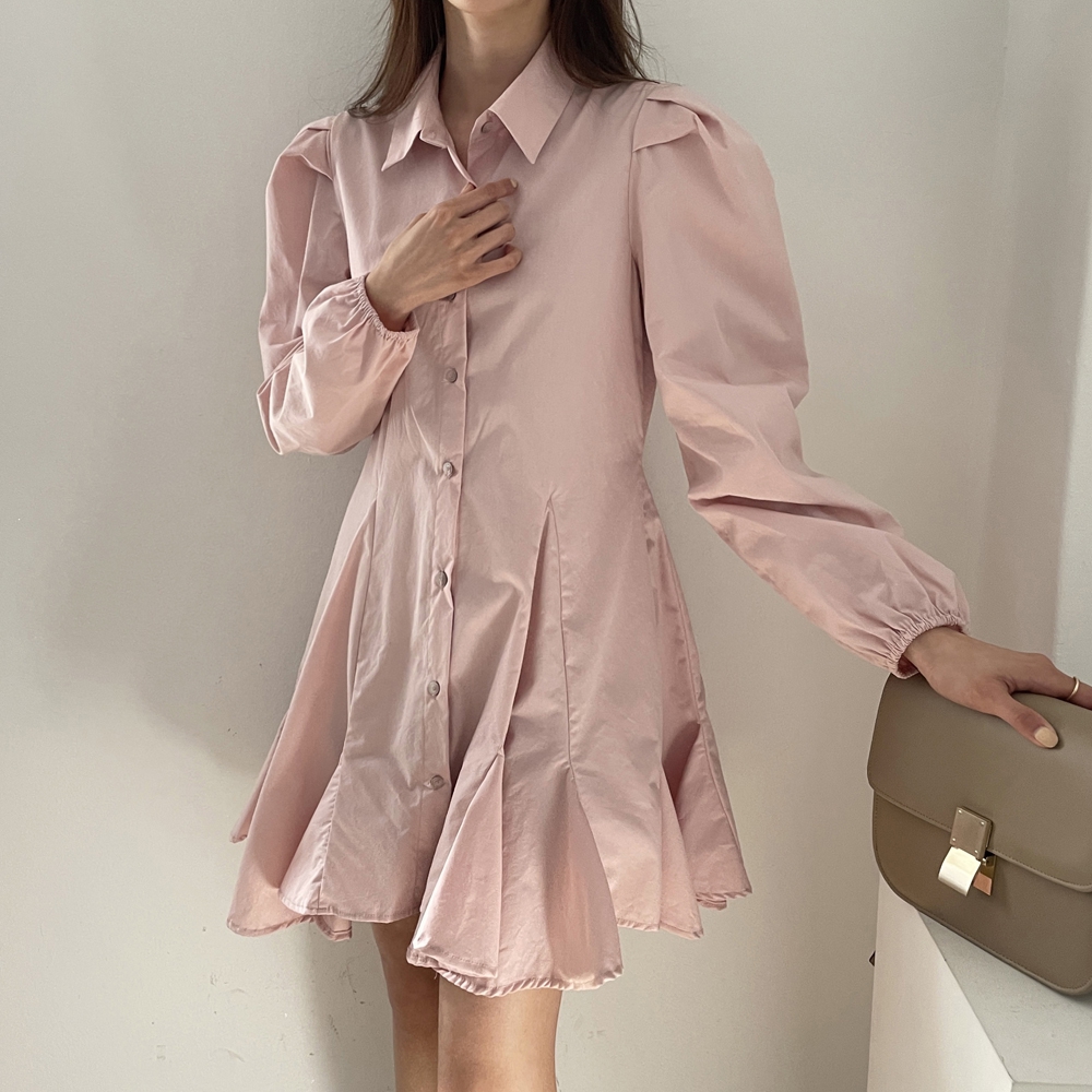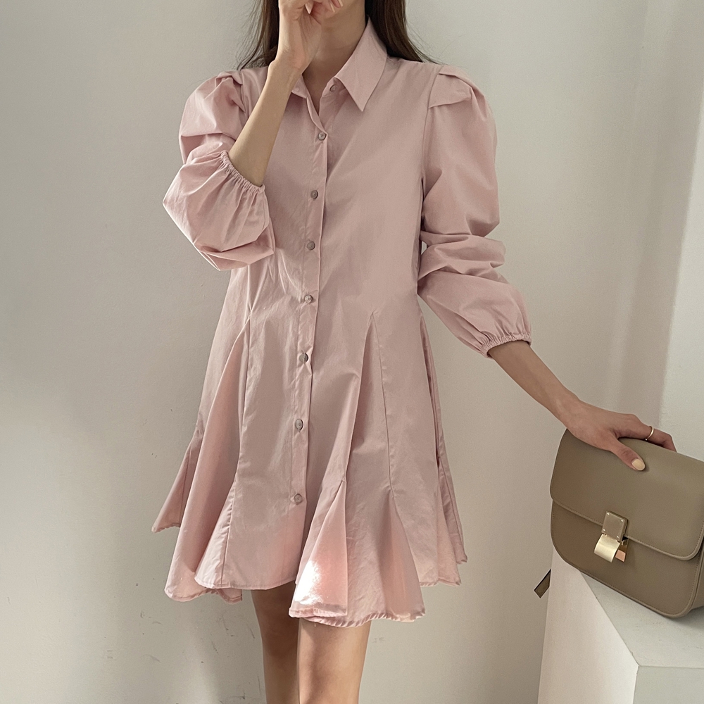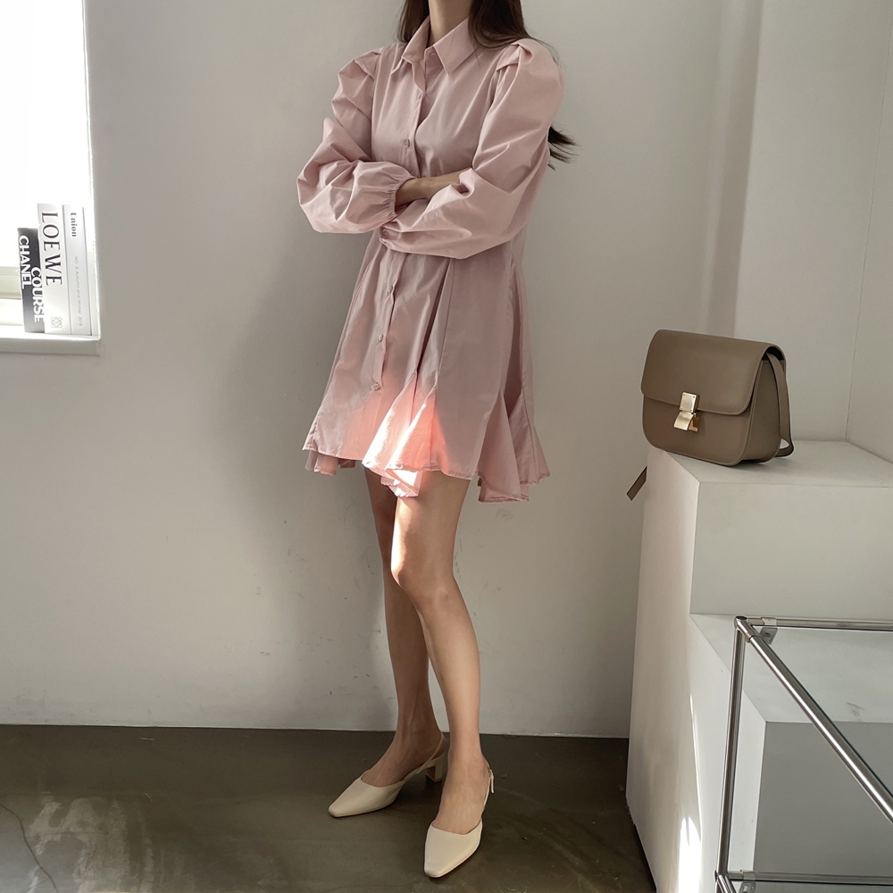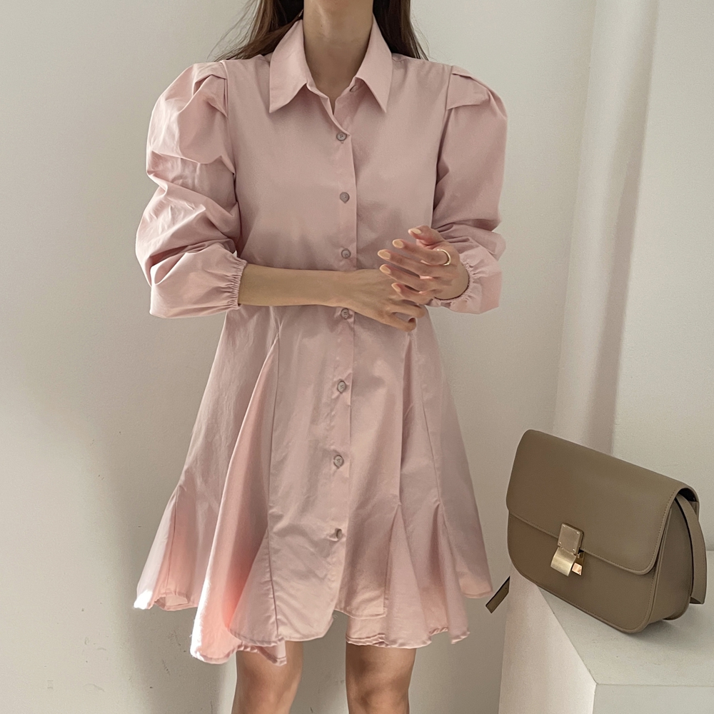 다트 퍼프 셔츠 원피스