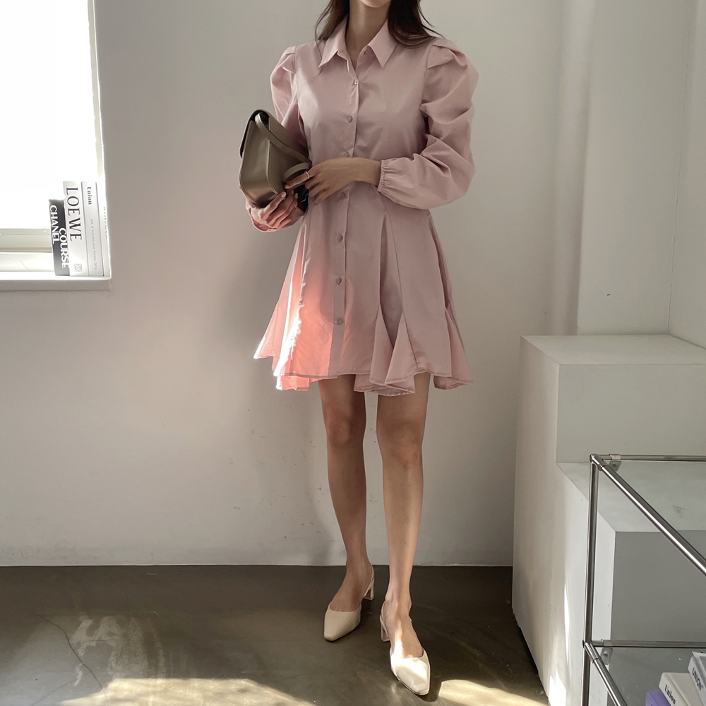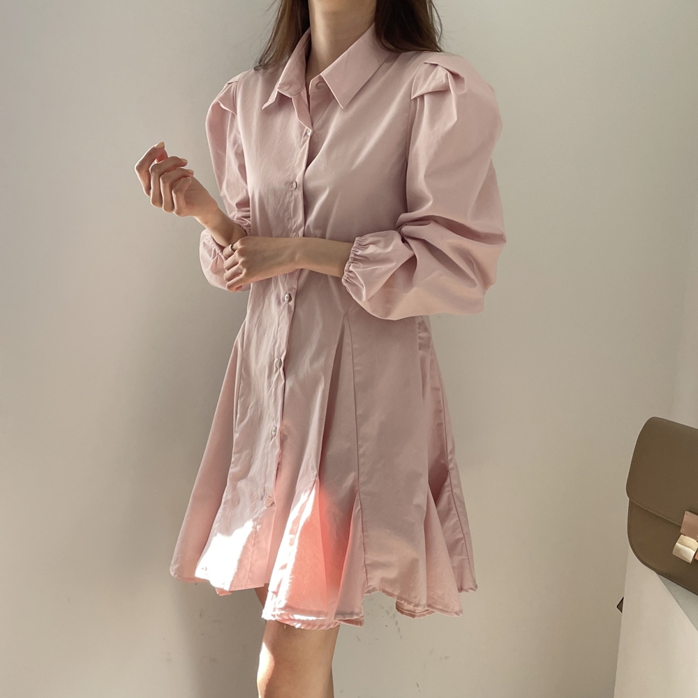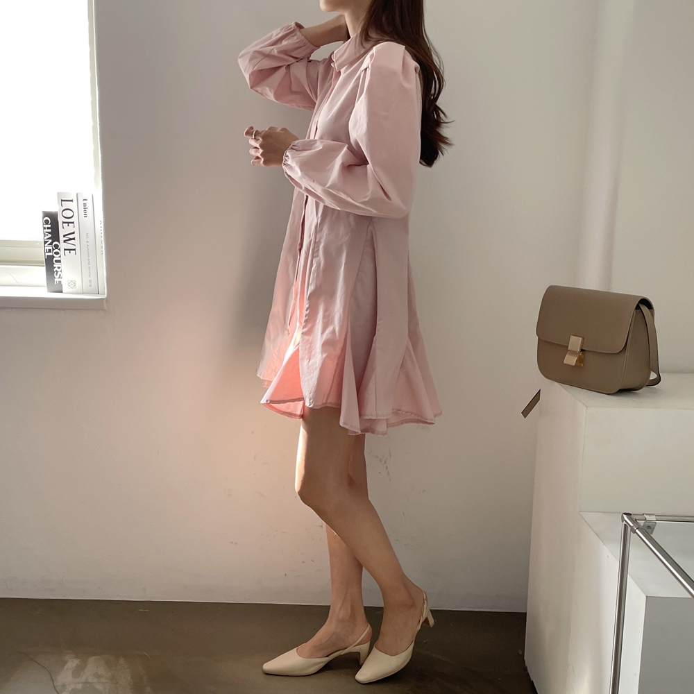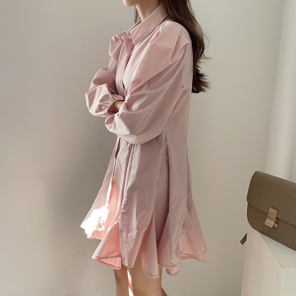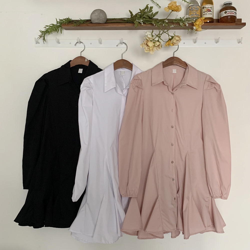 다트 퍼프 셔츠 원피스
