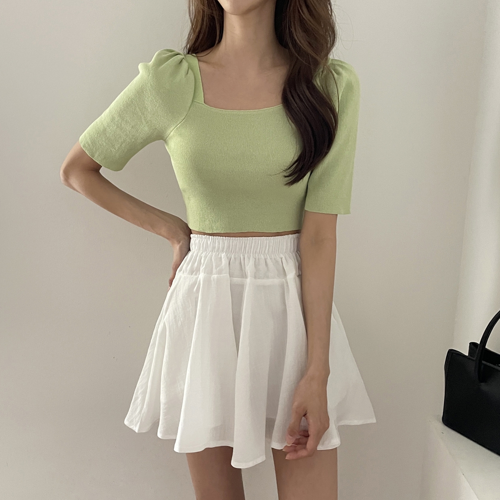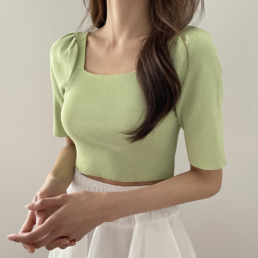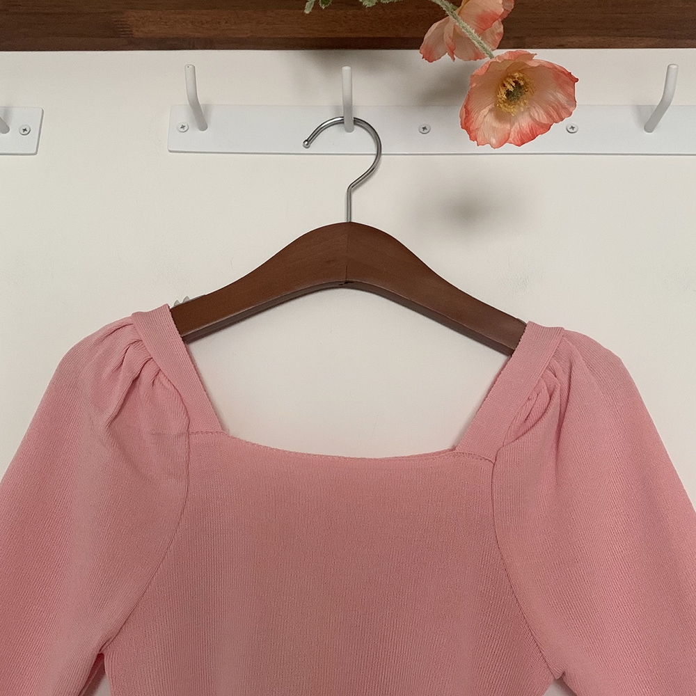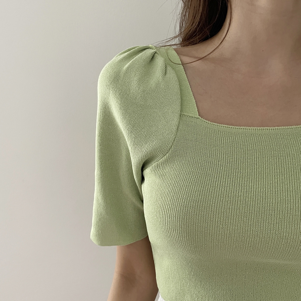 - 스퀘어넥 퍼프 셔링 반팔 니트
