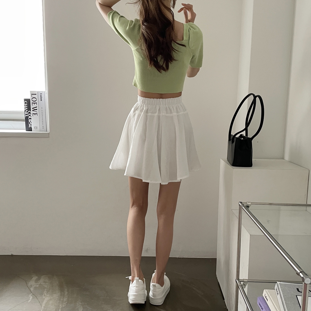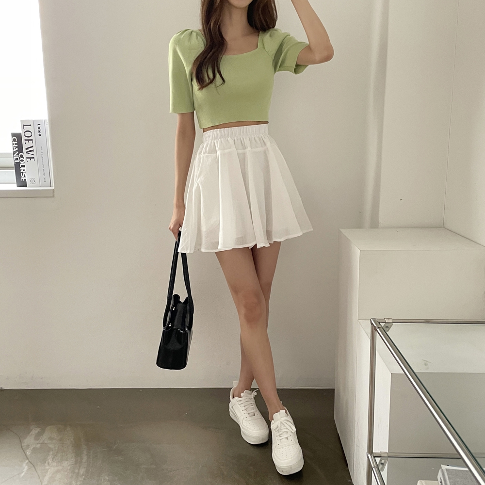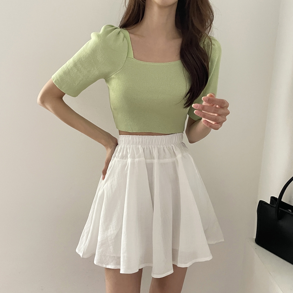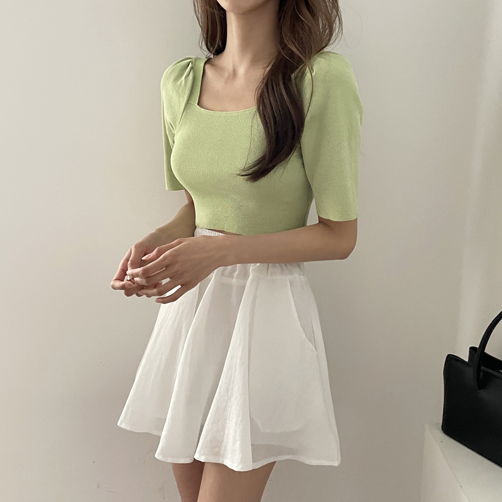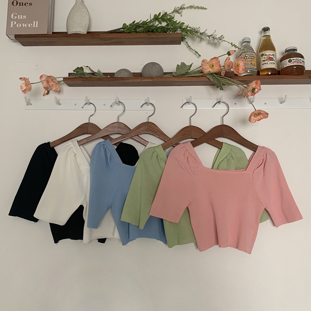 - 스퀘어넥 퍼프 셔링 반팔 니트