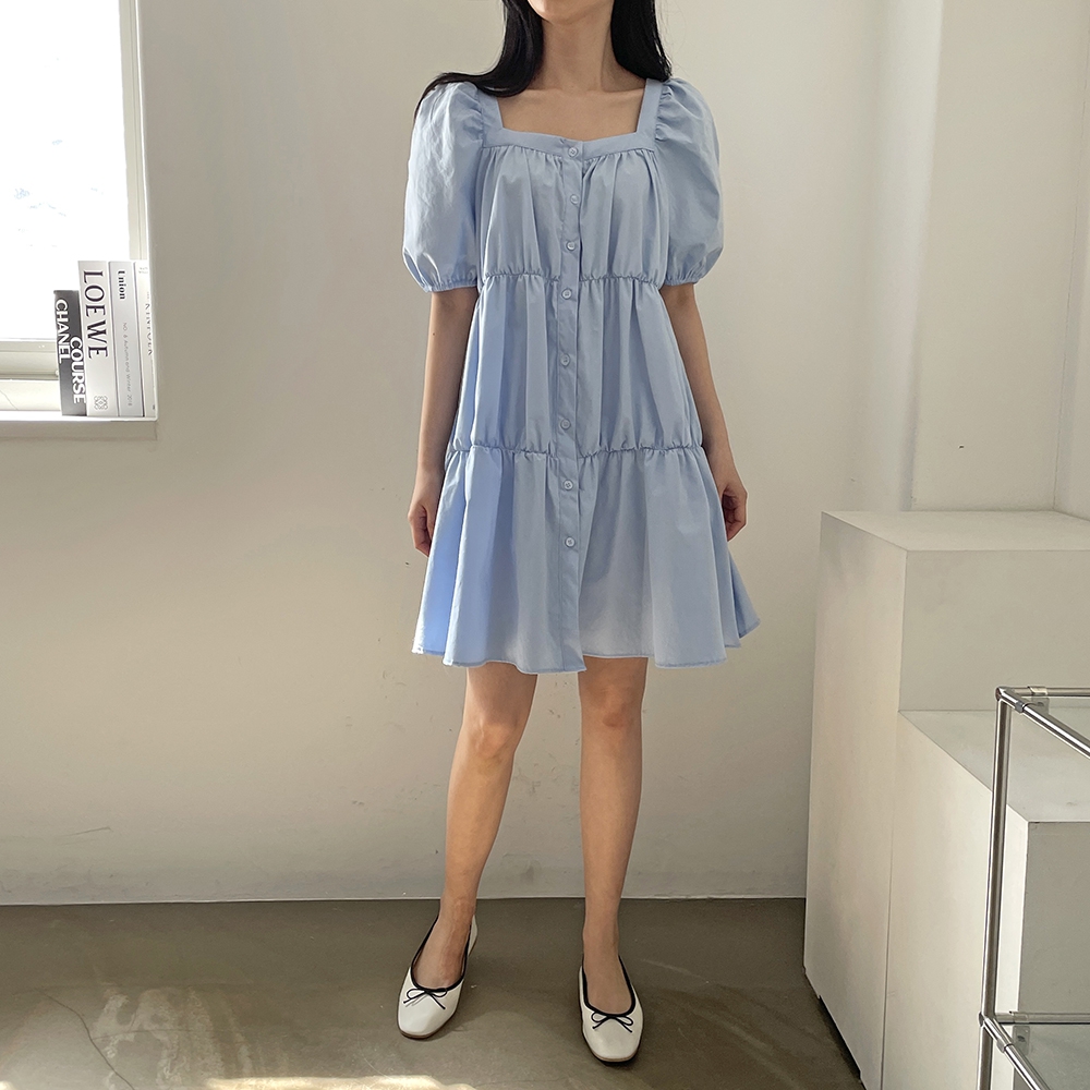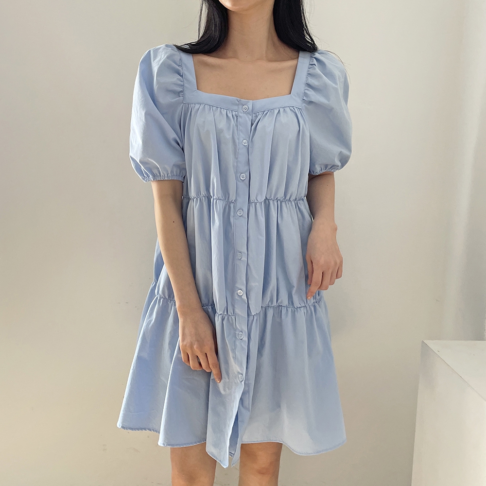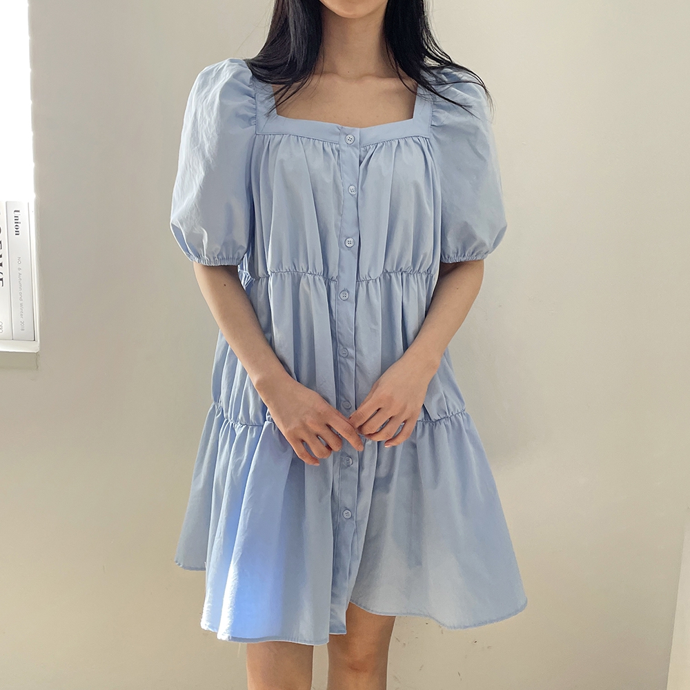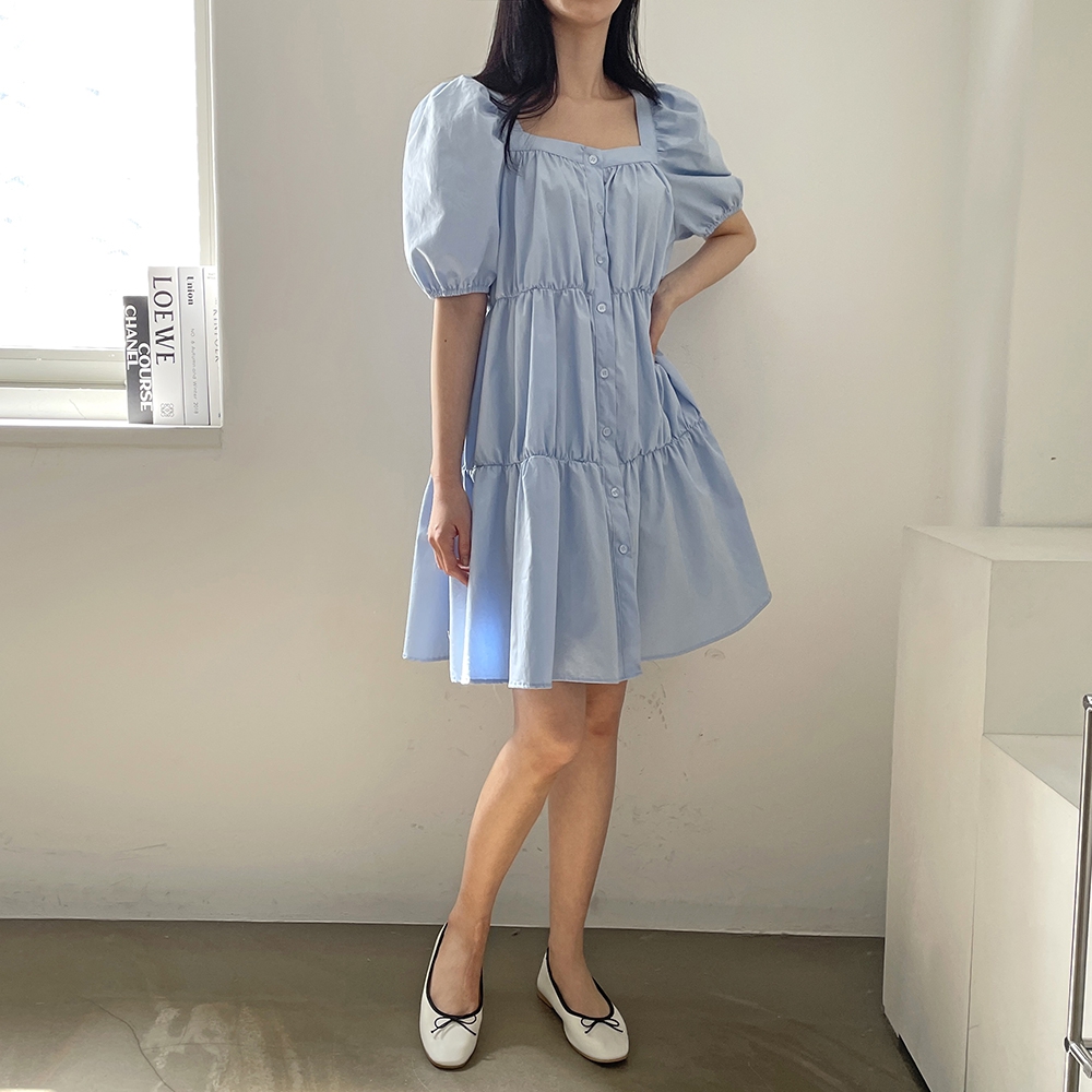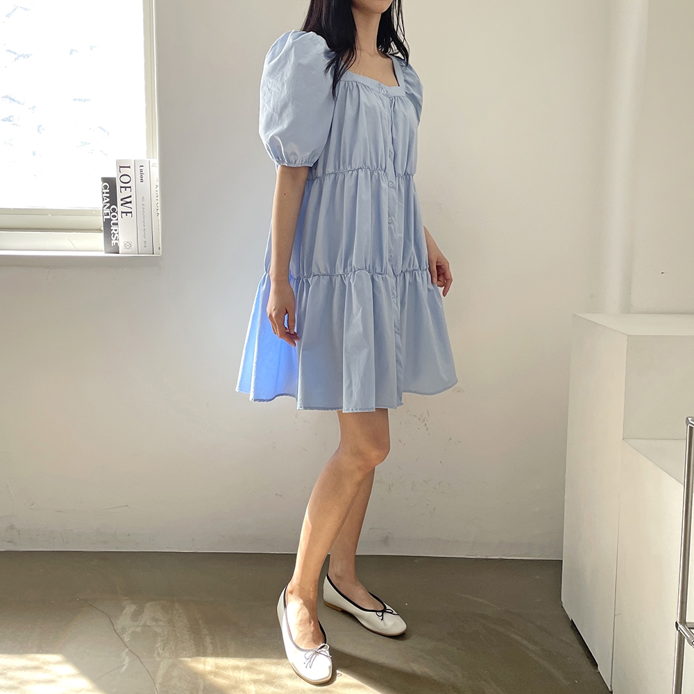 - 러블리 스퀘어넥 퍼프 캉캉 주름 미니원피스