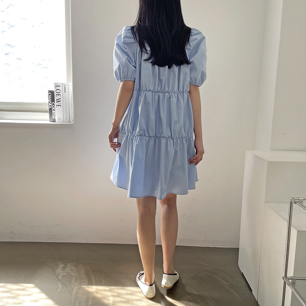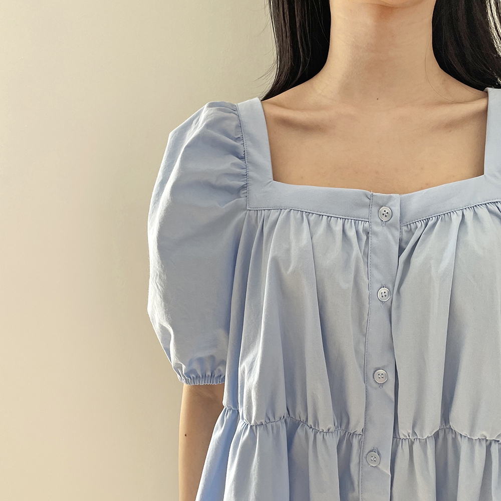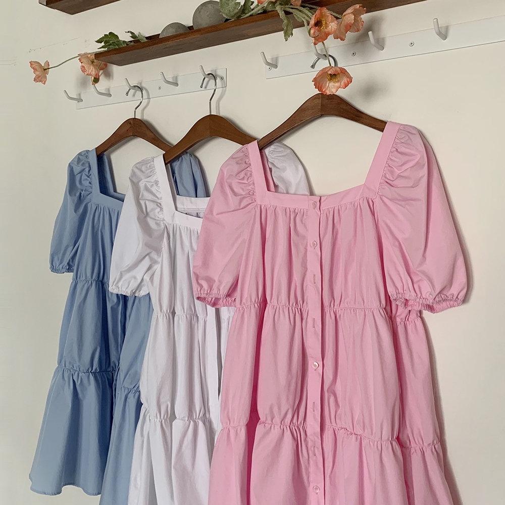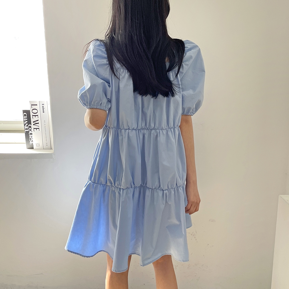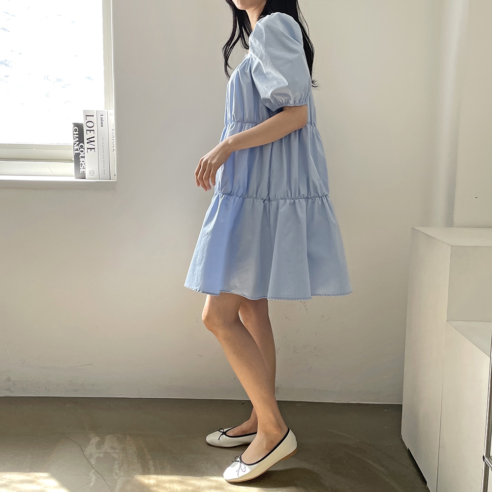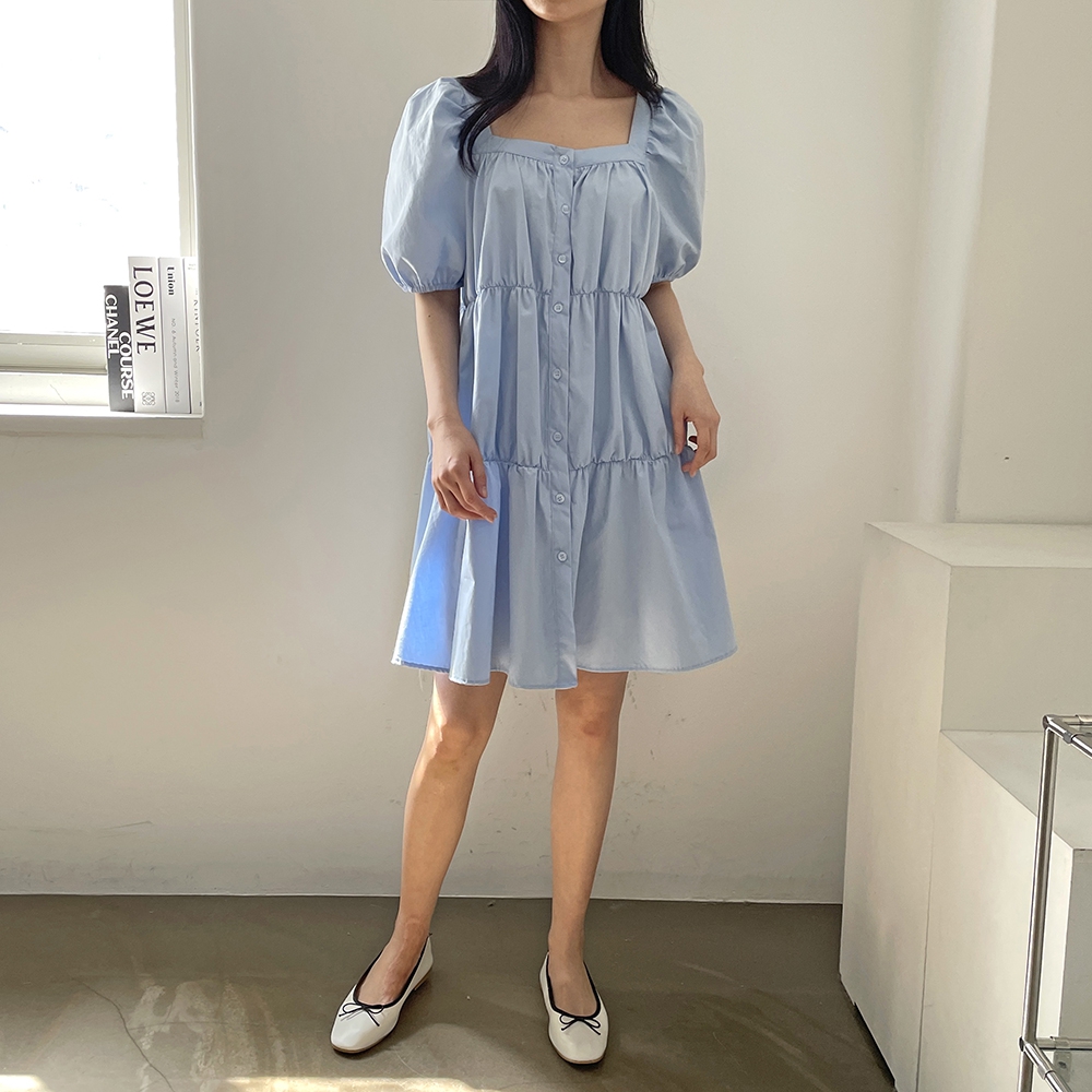 - 러블리 스퀘어넥 퍼프 캉캉 주름 미니원피스