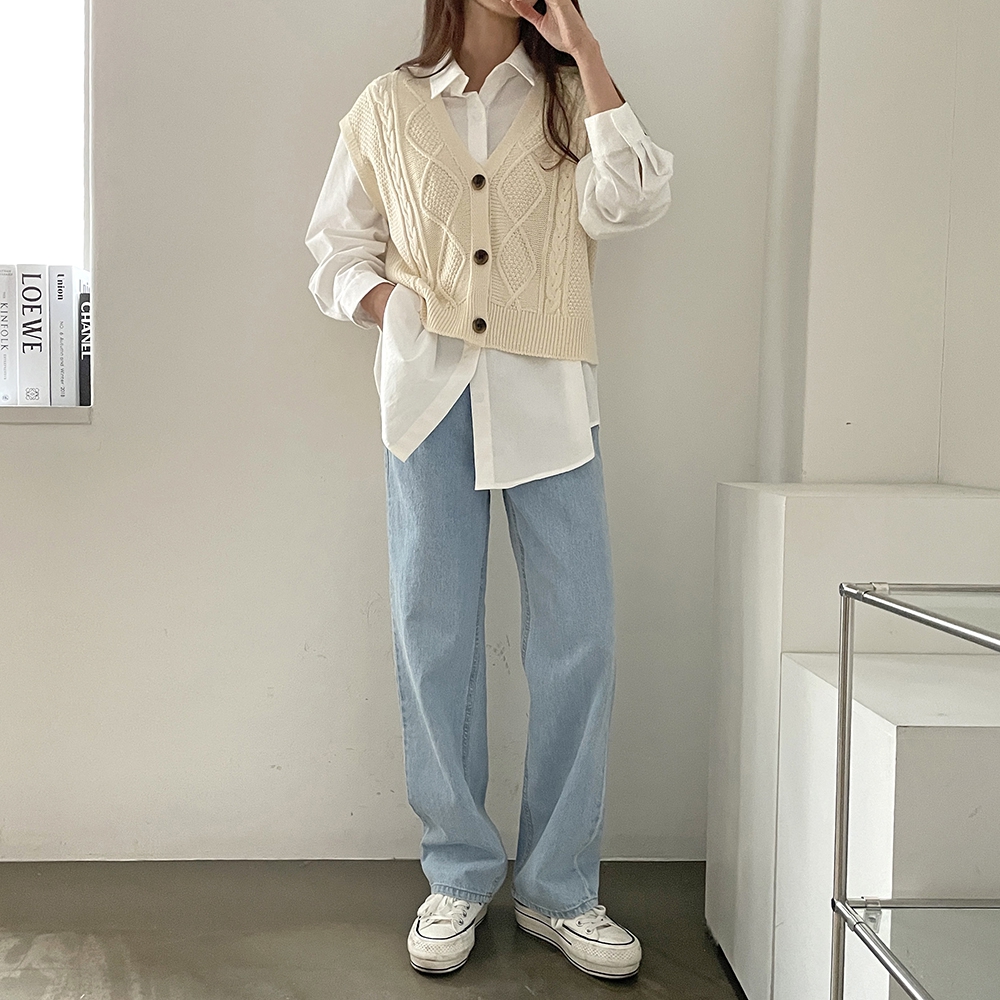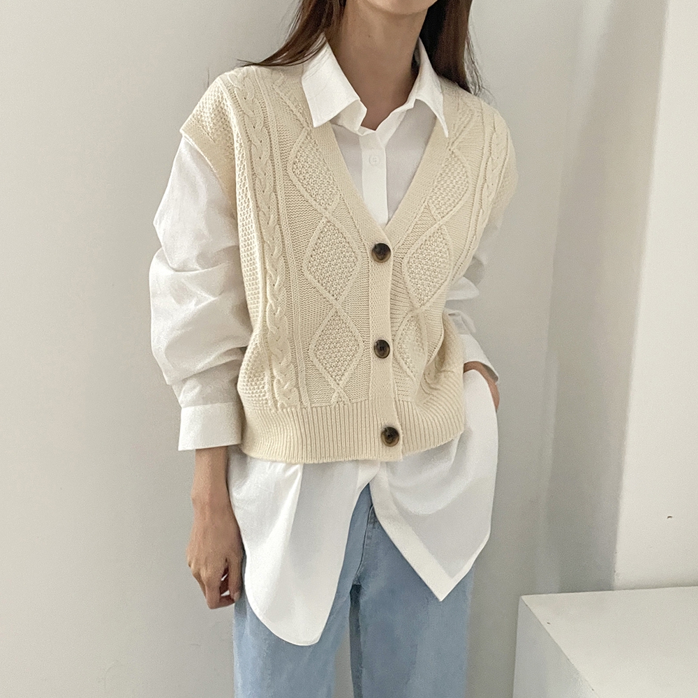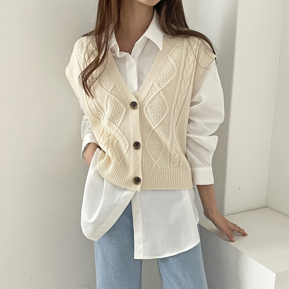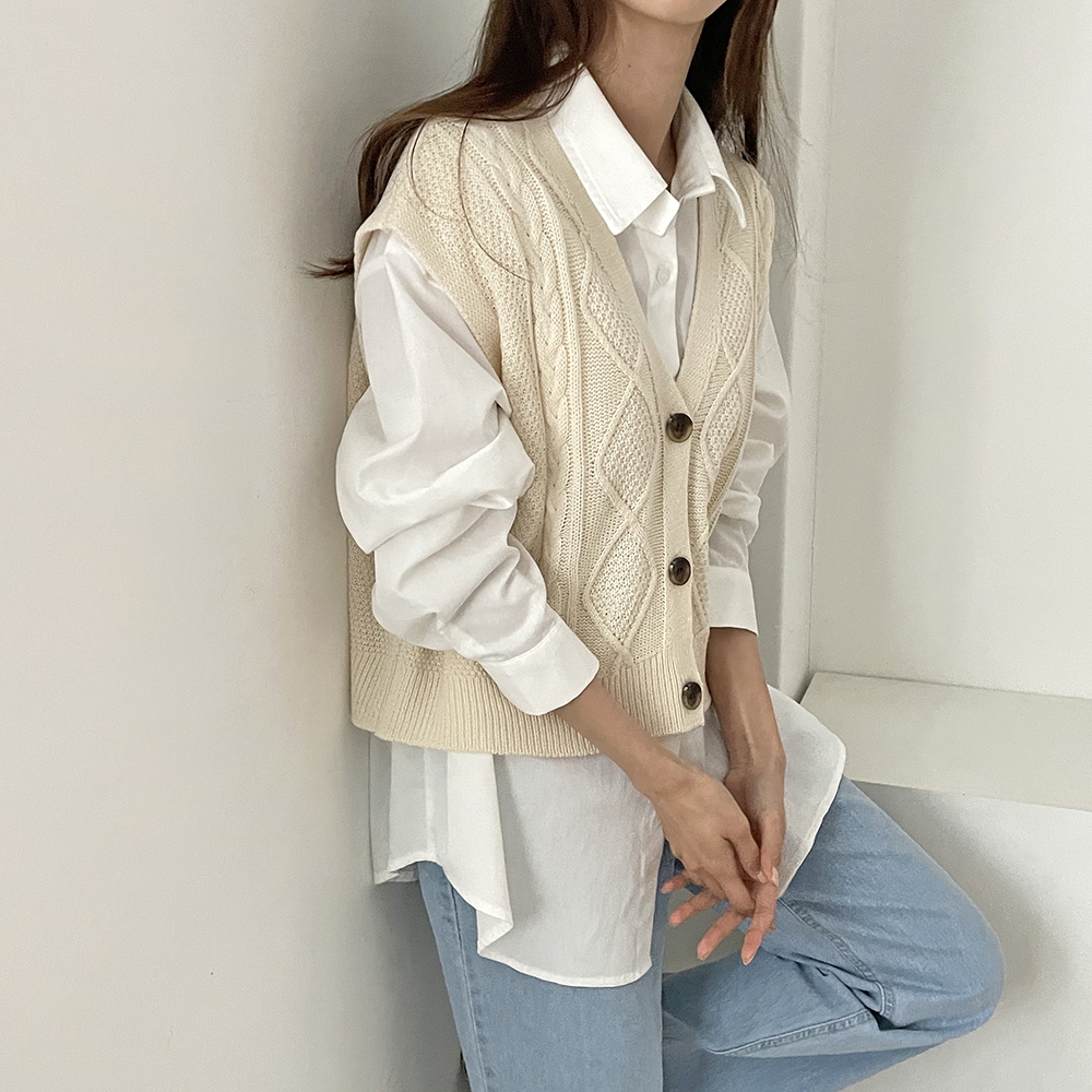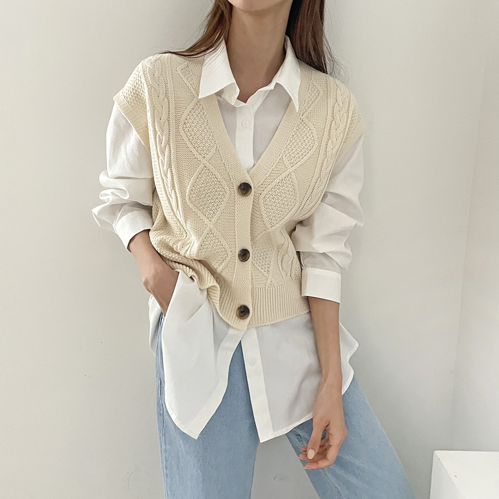 데일리한 무드의 꽈배기 니트 조끼입니다 :)