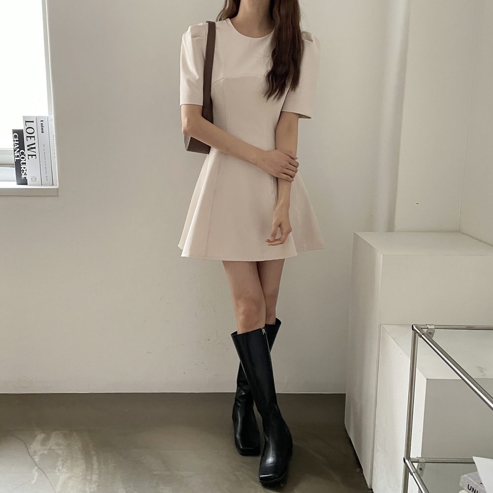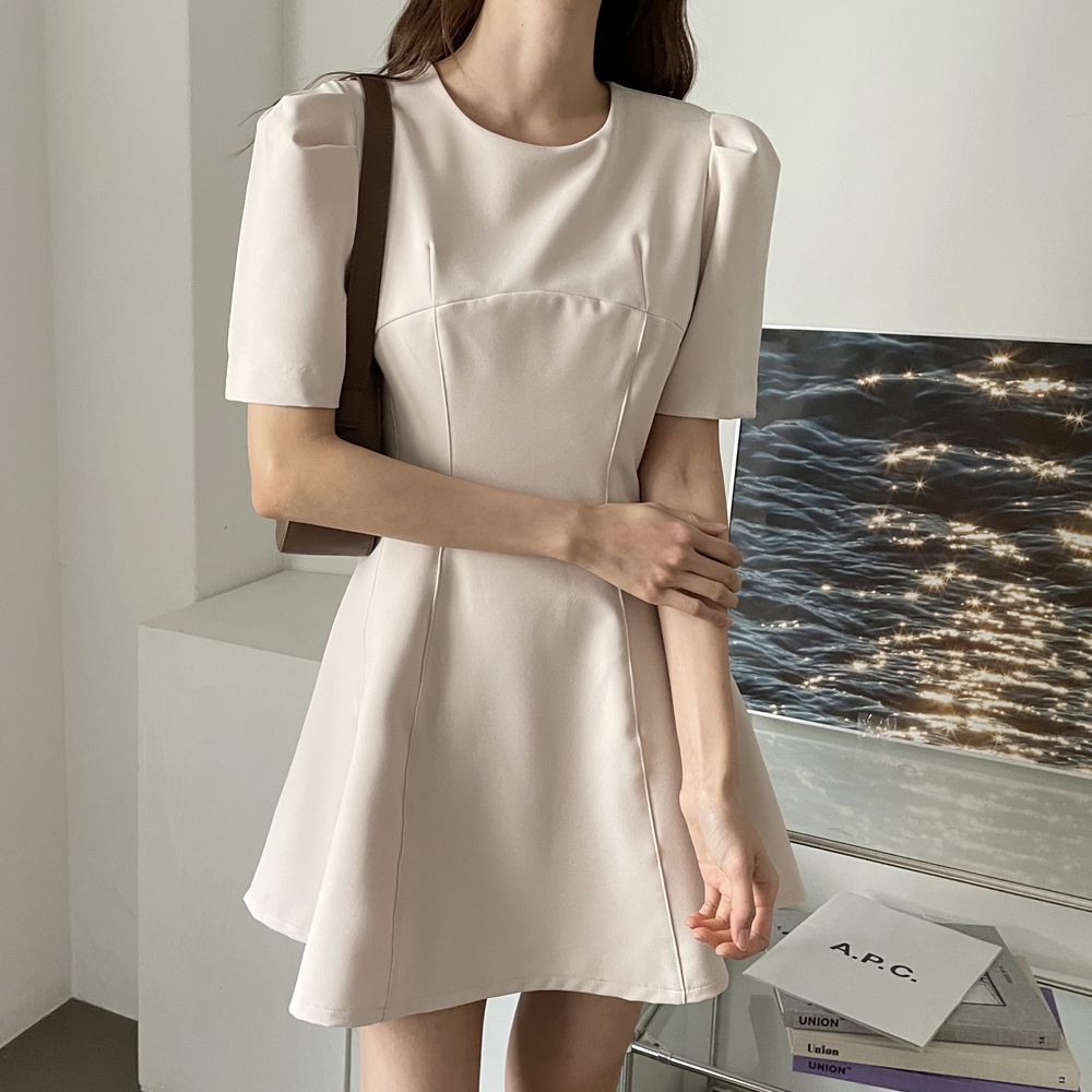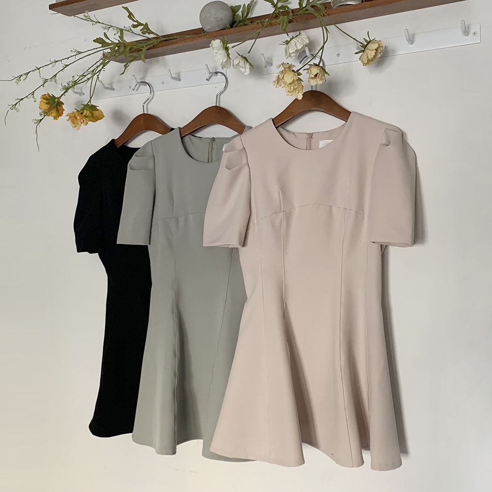 - A라인 절개 반팔 미니 원피스